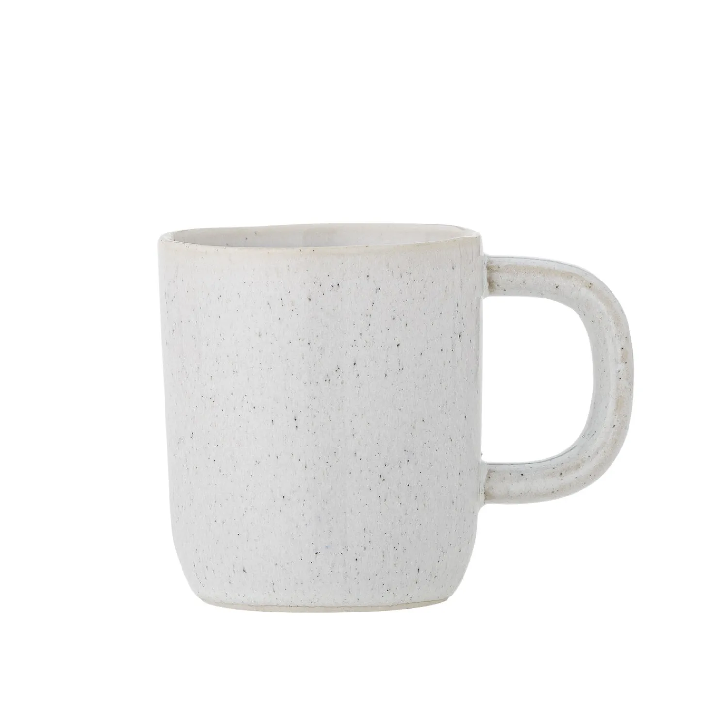 Dette håndlavede stentøjskrus fra Bloomingville kombinerer hverdagens praktiske behov med et karakteristisk prikket design. Med målene D8 x H9 cm passer kruset godt til både kaffe og te, mens den hvide glasur giver hver kop sit eget særpræg.