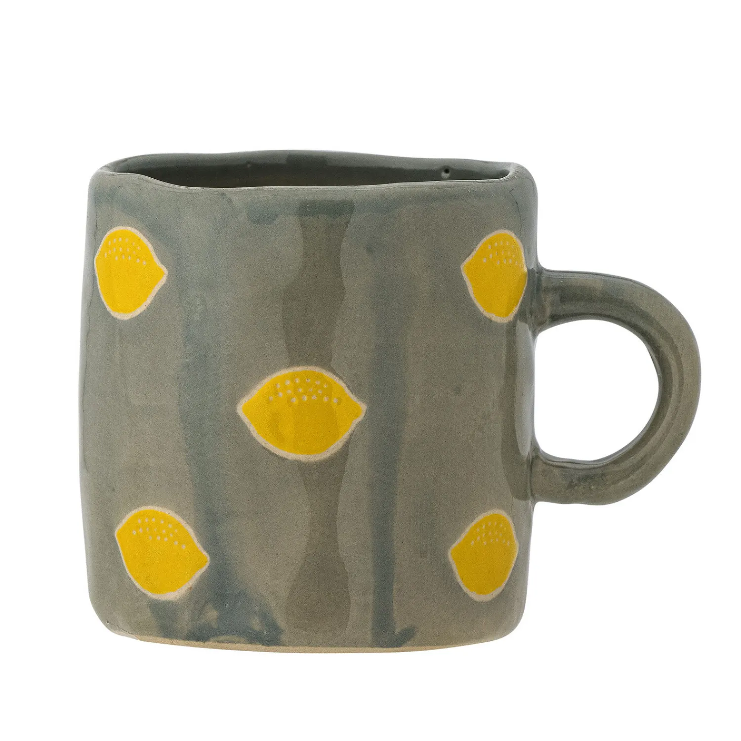 Håndmalede citronmotiver gør hver Agnes kop særpræget i sit udtryk. Fremstillet i holdbart stentøj med en støvet grøn glasur og let uregelmæssig form, der giver din kaffepause et personligt præg.