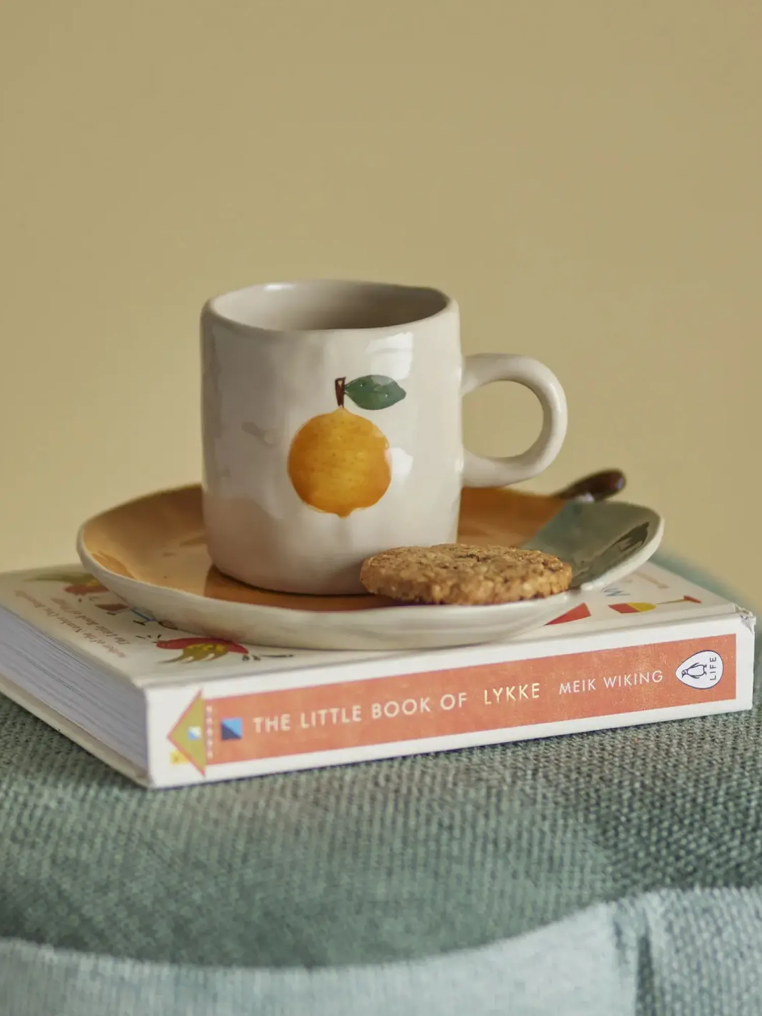 Denne håndmalede kop fra Bloomingville byder på et charmerende citronmotiv, der gør hver kop særlig. Den er fremstillet i holdbart stentøj med en kapacitet på 230 ml og praktiske mål på D7 x H6 cm.
