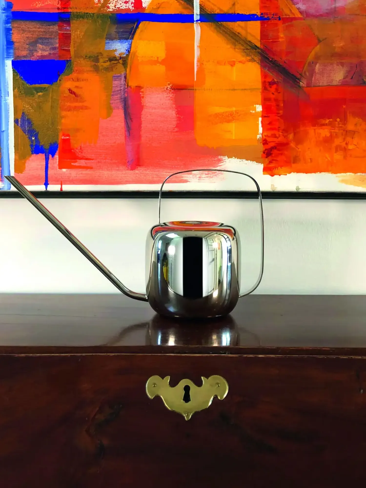 Agnes vandkanden er udstyret med en lang, smal tud, der er designet til kontrolleret vanding. Den buede hank sikrer et stabilt og komfortabelt greb, hvilket gør vandingen til en behagelig aktivitet. Fremstillet i spejlpoleret rustfrit stål tilføjer den et sofistikeret touch til ethvert rum.