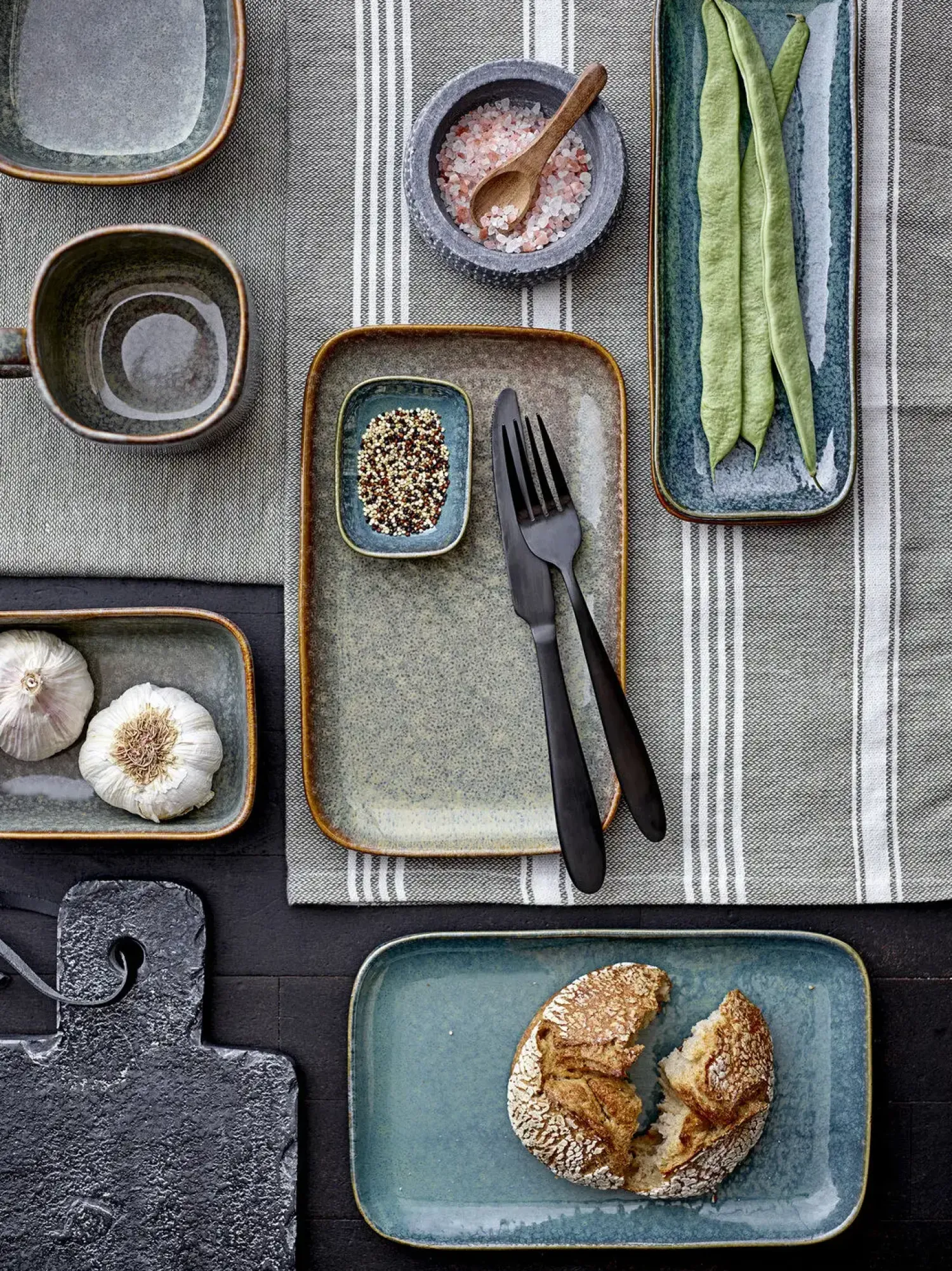 Aime-kruset er firkantet med afrundede hjørner. Den har en fantastisk størrelse, og den kommer i en jordbrun og dyb havgrøn tone. På grund af arten af glasuren og varen, der bliver håndlavet, kan farvevariationer forekomme.