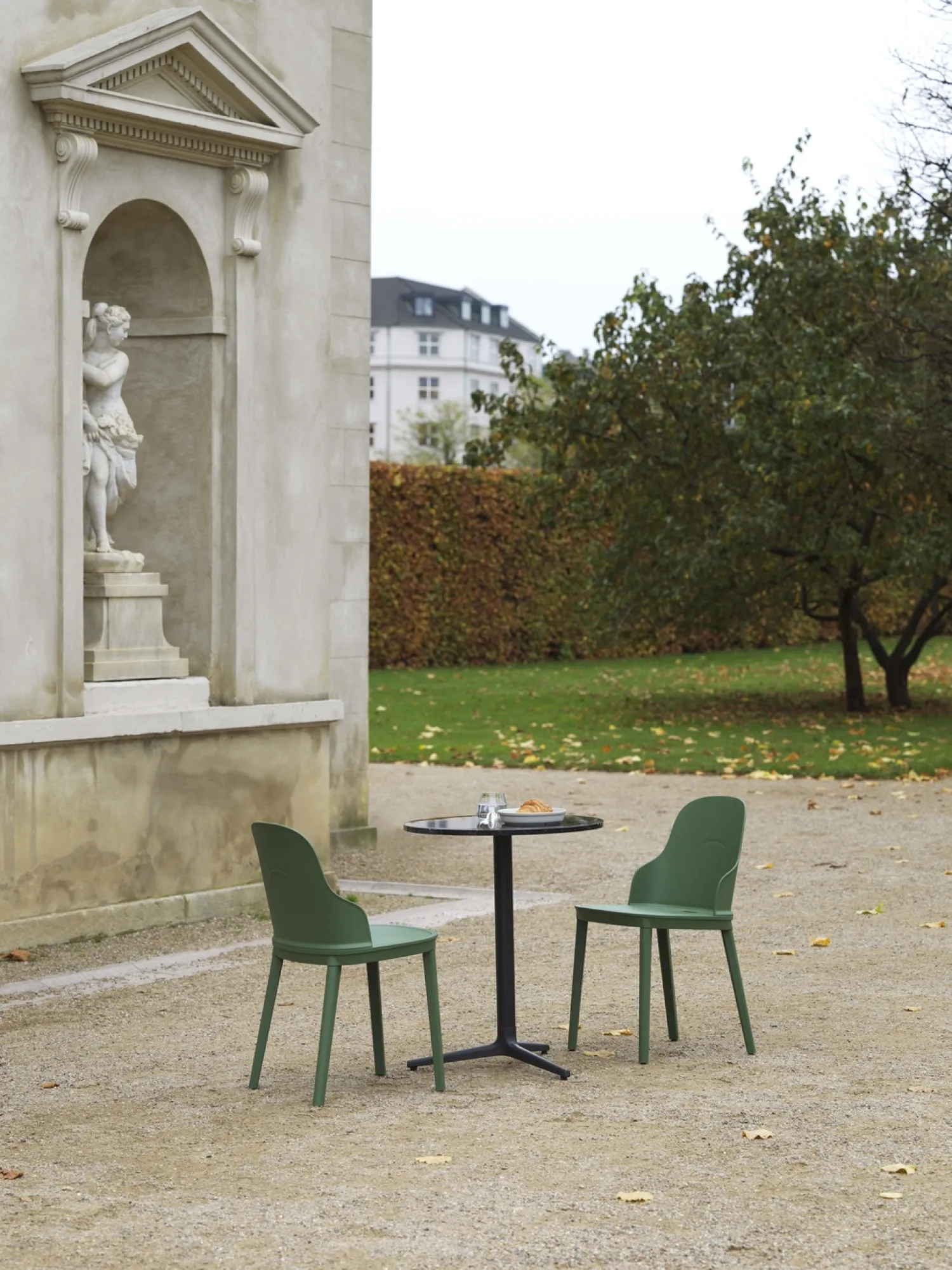 Allez-serien er det seneste tilbud fra Normann Copenhagen. Denne alsidige bord- og stoleduo er designet til at give mange års brug enten indendørs eller udendørs. Allez-bordet er kendetegnet ved slanke, elegante linjer fra alle udsigtspunkter og en cylindrisk 3- eller 4-benet støbejernssokkel, der er diskret formet til at efterligne krumningen af Allez-stolebenene. Justerbare fødder er indbygget i designet, hvilket gør det muligt at stabilisere det på ujævne overflader. Allez tilbyder fleksibilitet med valget af enten cirkulære eller firkantede bordplader lavet af et bredt udvalg af materialer. Inspireret af traditionelle caféborde inkluderer Allez to bordplademuligheder, der er ideelle til udendørs brug: marmor og letvægts, 4 mm tyndt massivt rustfrit stål. Bordpladen fås også i sort eller naturlig egefiner. De mange mulige kombinationer gør det muligt for et Allez-ensemble at komplimentere den eksisterende indretning.
