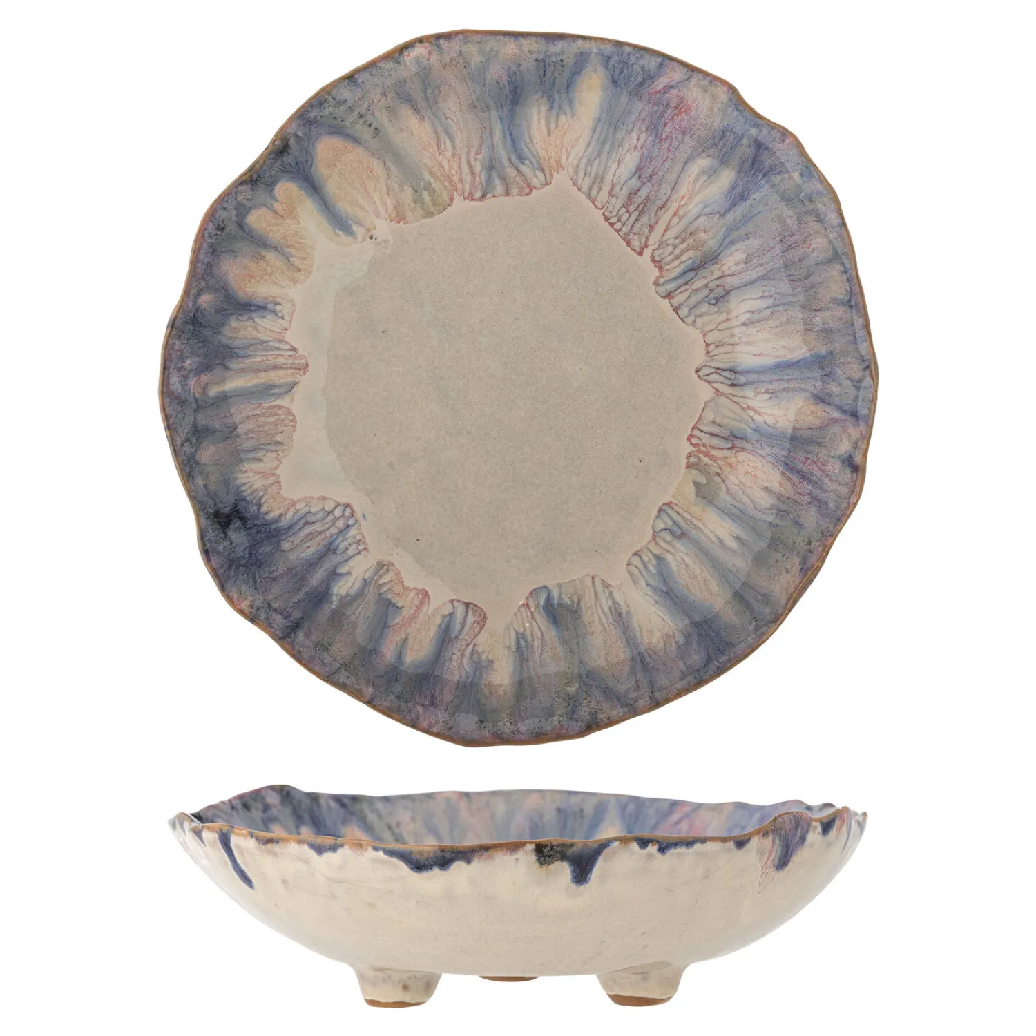 De små fødder på bunden giver stabilitet, når du serverer. Den blå glasur skaber naturlige variationer i overfladen, hvilket betyder, at din skål får sit eget unikke udtryk. Ideel når du vil præsentere maden med stil.