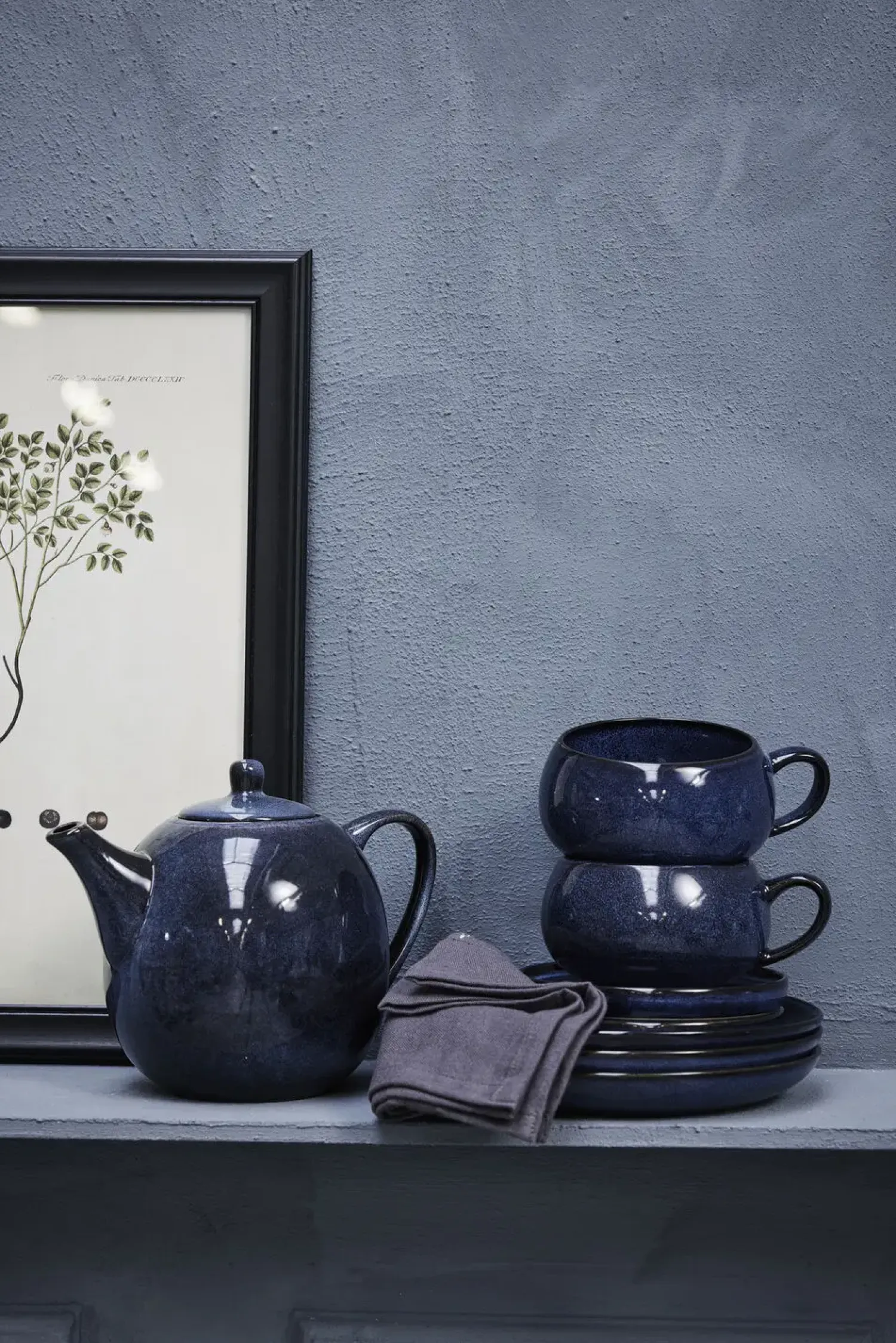 Smuk blå stentøj kop/underkop fra LENE BJERRE. Tilføj et islæt af glæde og skævhed med denne Amera kop/underkop, som måler H7,5xØ14 cm. og kan indeholde 40 cl. Med sine rolige farver og bløde organiske former, vil koppen med garanti skabe en hyggelig stemning ved dit bord. Denne kop/underkop er en del af Amera serien. Charmen og kendetegnet for produkterne i Amera serien er, at produkterne er belagt med dobbelt reaktiv glasur. Dette betyder af der kan forekomme variationer i farve og udseende fra produkt til produkt.