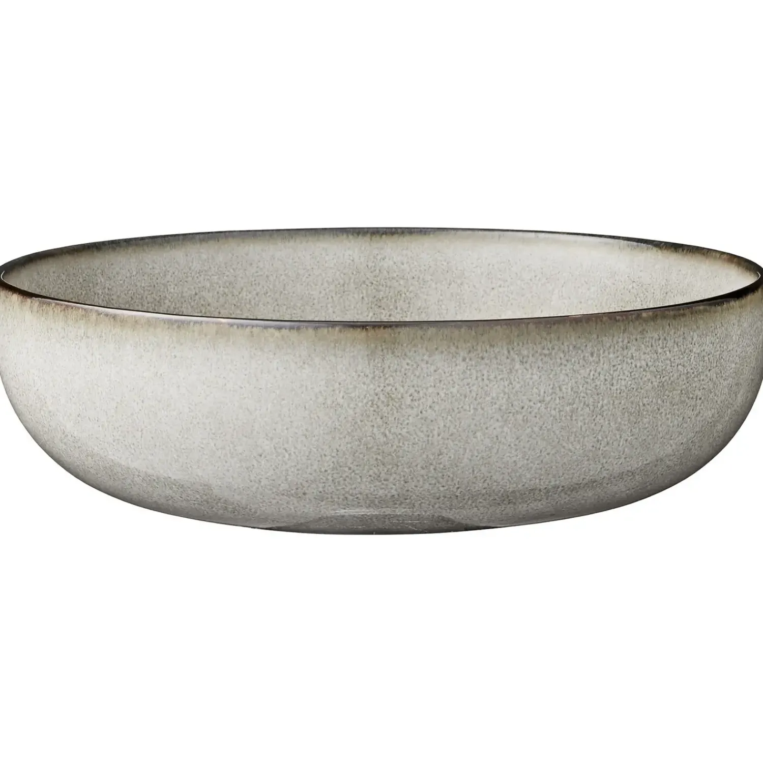 Smuk grå skål med et mål på Ø20 cm. fra LENE BJERRE. Tilføj et islæt af glæde og skævhed med denne Amera stentøj skål, som måler H6,5 cm. og som med sine bløde, organiske former med garanti vil skabe en hyggelig stemning ved dit middagsbord. Denne skål er en del af Amera serien. Charmen og kendetegnet for produkterne i Amera serien er, at produkterne er belagt med dobbelt reaktiv glasur. Dette betyder af der kan forekomme variationer i farve og udseende fra produkt til produkt. OBS: Denne skål tåler mikroovn og opvaskemaskine.