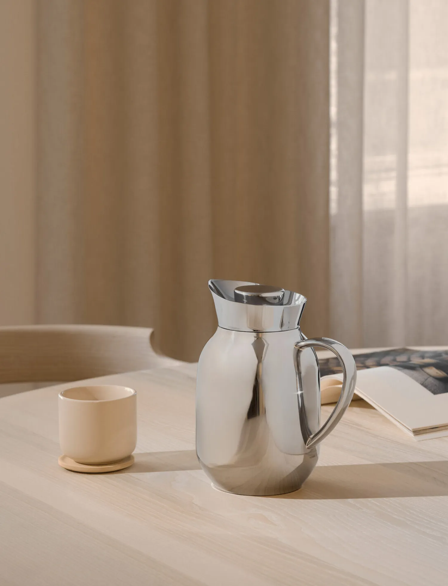 Steltons Amphora-kande i rustfritstål er skabt til at imponere med sin kombination af elegance og funktionalitet. Kanden er designet af Sebastian Holmbäck, inspireret af oldgræske lerkrukker, der blev brugt til opbevaring af olie og vin. Holmbäcks design, der trækker på amforaens karakteristiske former, skaber en bro mellem fortid og fremtid, og passer formmæssigt sammen med de øvrige kander. Kanden er ikke blot visuelt tiltalende, men også praktisk og holdbar med den rustfrie stålkonstruktion. Med sit isolerende stålindsats sikrer Holmbäcks termokande, at din kaffe og te holder sig varm i timer, samtidig med at den tilfører en tidløs elegance. Kanden tåler vask i industrielle opvaskemaskiner, mens låget skal vaskes i hånden.