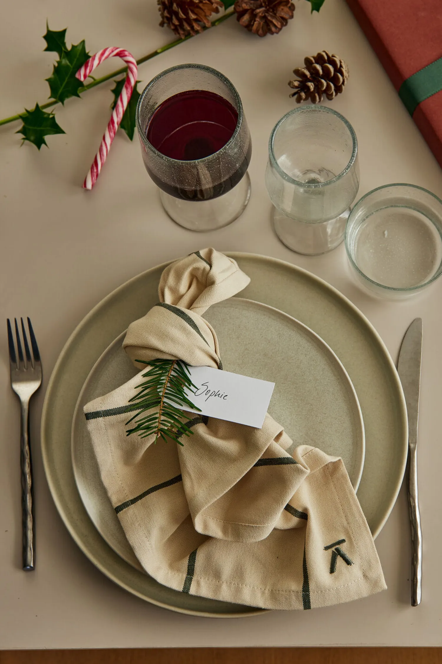 Det grønstribede mønster tilføjer en visuel detalje til dit bord uden at dominere. Hvis du ønsker at skabe en stilfuld bordopsætning, der føles gennemtænkt, passer disse servietter godt ind. De fungerer både til hverdagsbrug og når du har gæster, og logoet i hjørnet giver et diskret touch af Andersen Furniture’s tradition.