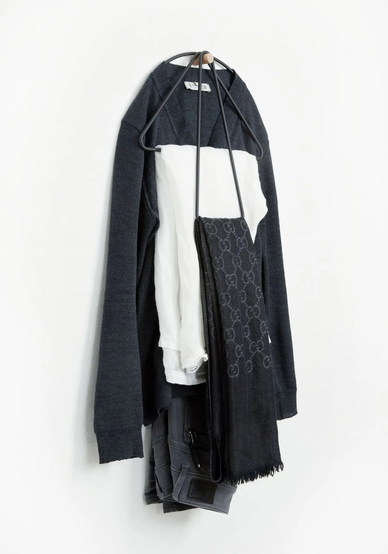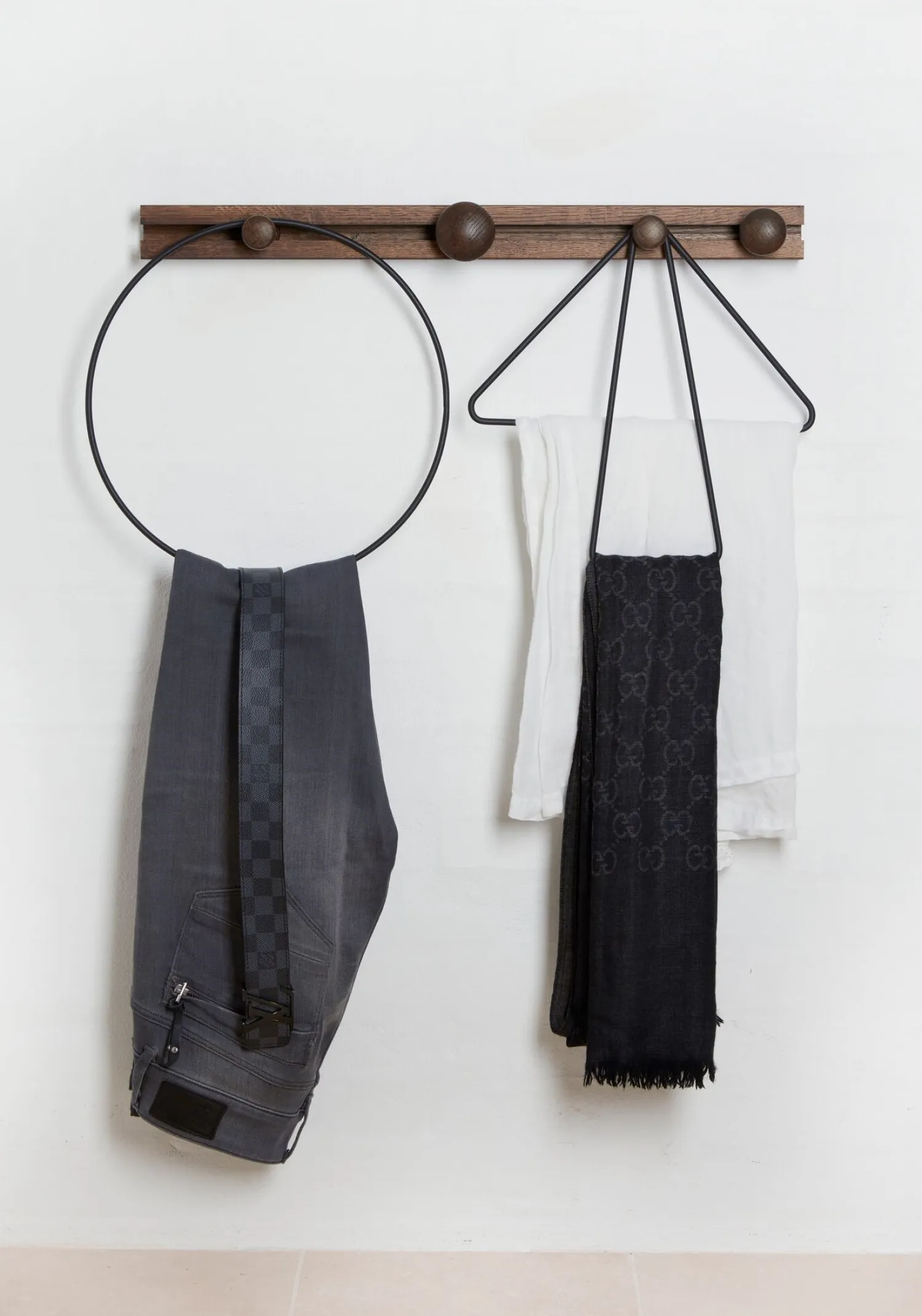 Du får en knagerække, der giver dig frihed til at hænge både tøj og tilbehør, som du ønsker. De forskellige geometriske former sikrer, at du kan organisere dine ting på en måde, der passer til netop dine behov i hverdagen.