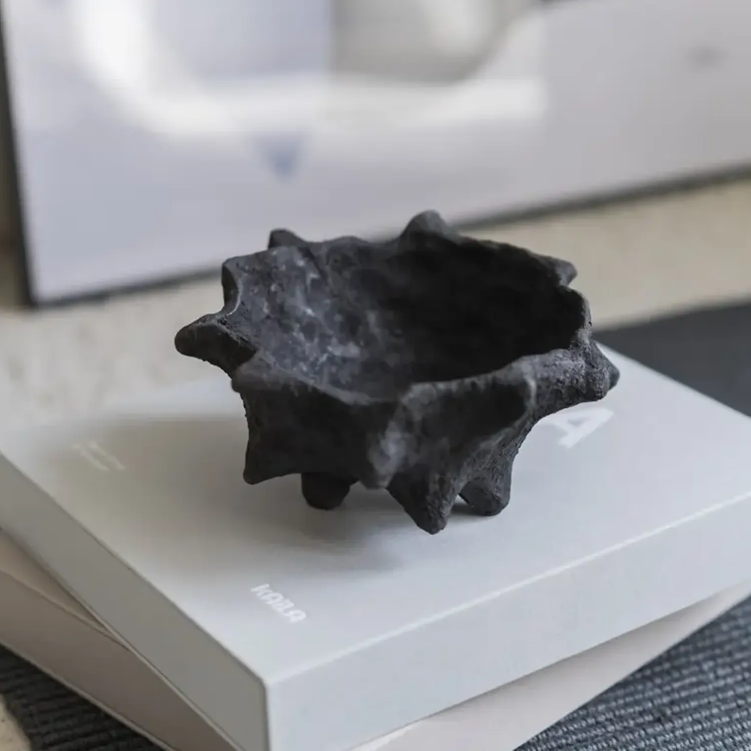 CHESTNUT skålen er en del af ART PIECE-kollektionen, som er en serie produkter, der er baseret på Mette Ditmers egne keramiske kreationer. Produkterne er genskabt i materialet stone resin, der er mindre skrøbeligt end keramik, så de skulpturelle figurer kan modstå hverdagsbrug uden at gå i stykker. Skålene færdiggøres manuelt efter støbningen, hvilket gør hver enkelt skål unik.