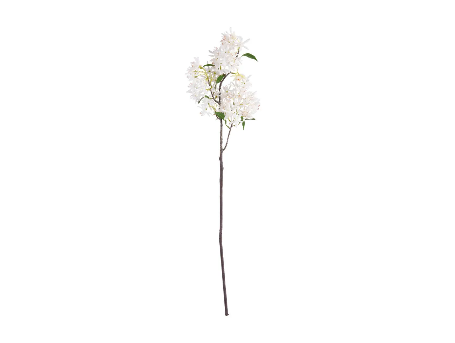 Denne kunstige blomsterstilk måler 86 cm i højden og har flere hvide blomsterklaser på en mørk stilk. Blomsterne er fremstillet af stof, og stilken har en bredde på 22 cm, hvilket gør den velegnet til forskellige vaser og dekorationer i hjemmet.