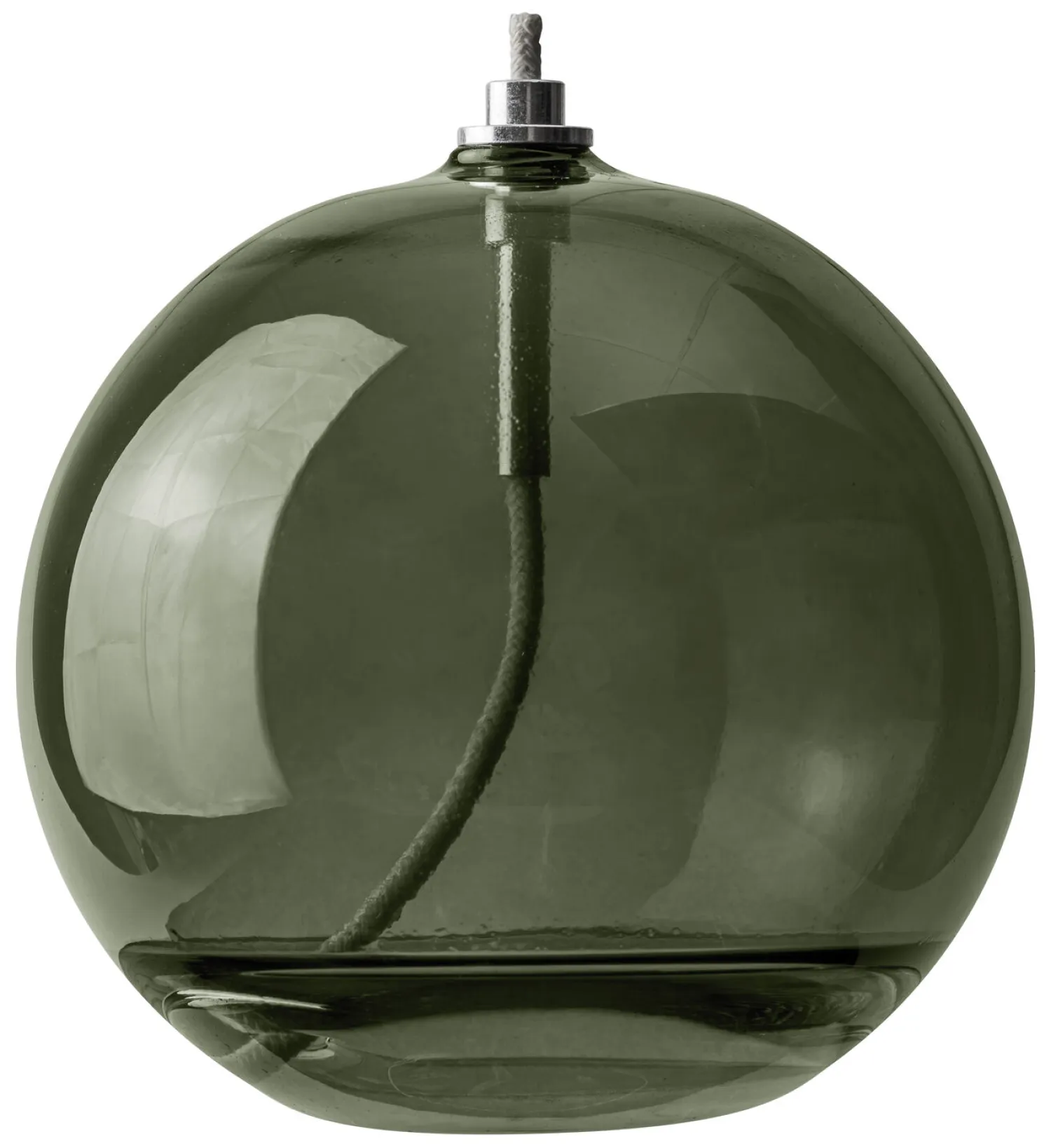 Skab en sofistikeret atmosfære med den ellipseformede AURA-olielampe fra Mette Ditmer. Denne smukke lampe, i en dybgrøn farve, har en dragende form, der tilføjer en ekstra dimension af elegance til din indretning.Når flammen tændes, spreder lampen et blødt, varmt lys, som skaber en beroligende og hyggelig stemning. Den unikke ellipseform og det farvede glas gør lampen til et iøjnefaldende midtpunkt, uanset hvor den placeres – på et veldækket bord, en kommode eller i vindueskarmen.Lampeolie medfølger ikke, men det anbefales at anvende en lugt- og sodfri lampeolie. En praktisk glastragt medfølger for nem påfyldning af lampeolie.