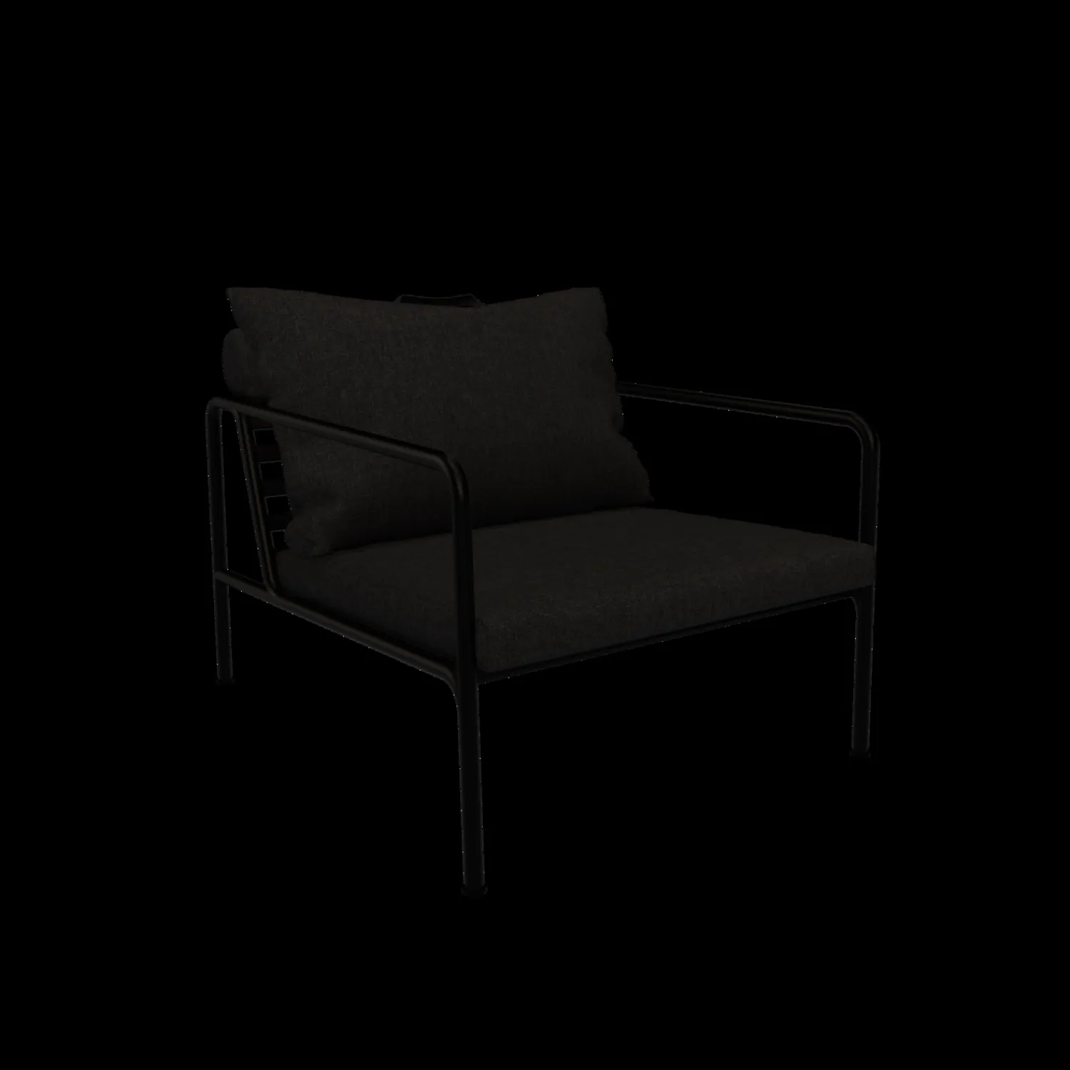 Denne loungestol kombinerer et let udtryk med gennemtænkt funktionalitet. Hynderne er fremstillet af vejrbestandigt stof med 50 % genanvendt akryl, hvilket sikrer holdbarhed udendørs. Denne stol er ideel til udendørs brug.