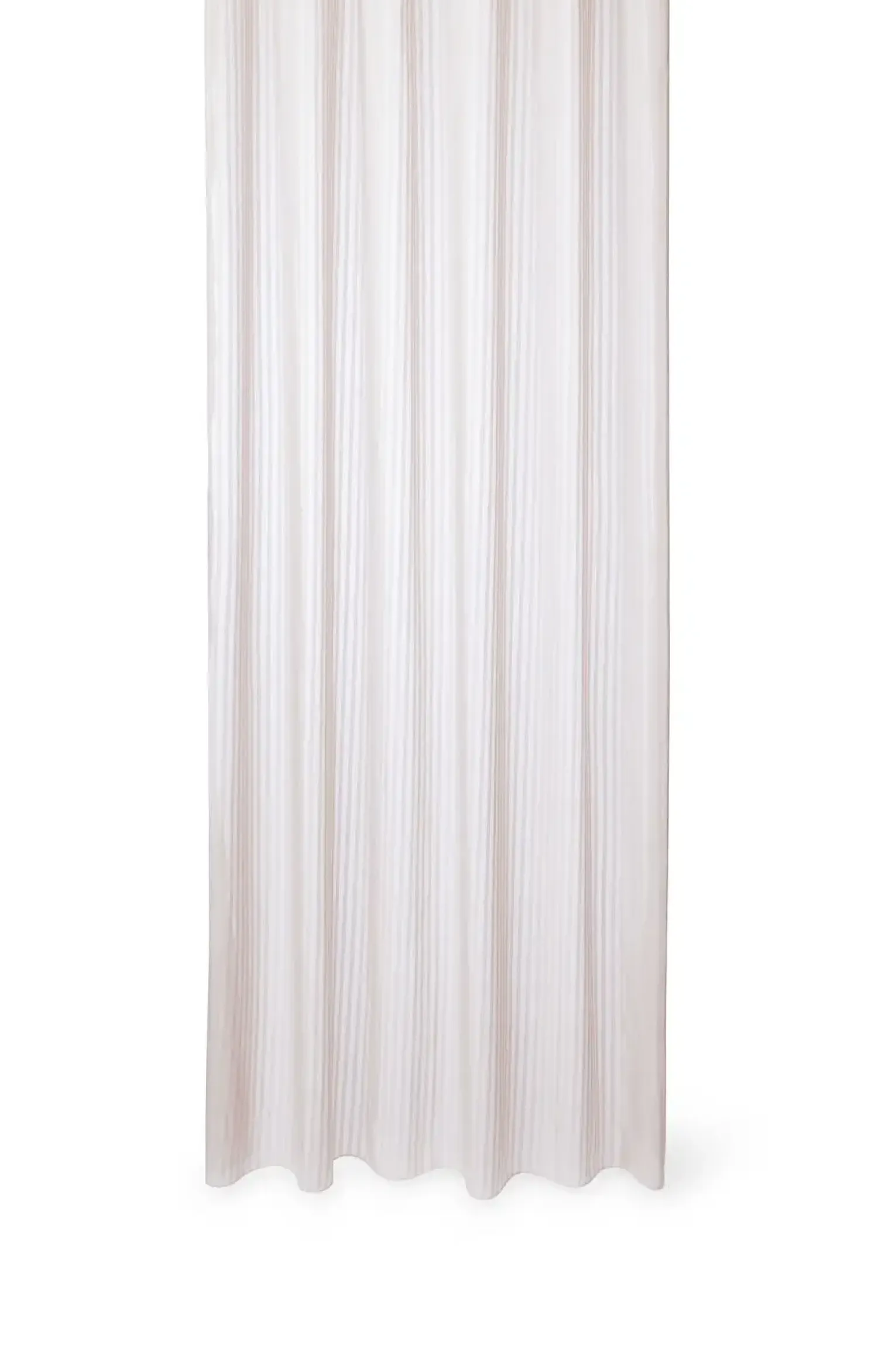 Dette badeforhæng med indarbejdet rynkebånd giver dig et naturligt og jævnt fald fra top til bund. De 140 x 200 centimeter sikrer fuld dækning af de fleste bruseområder, mens de vertikale linjer skaber en behagelig dybde.