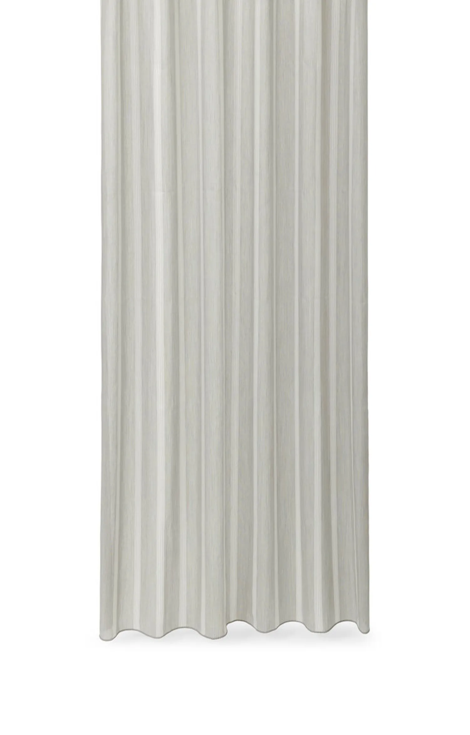 Den semi-transparente kvalitet i stoffet skaber en god balance mellem privatliv og lysindfald. De lodrette striber giver forhænget et roligt udtryk, mens den taupe farve passer naturligt ind i de fleste badeværelser. Du får både funktionalitet og et behageligt udtryk.