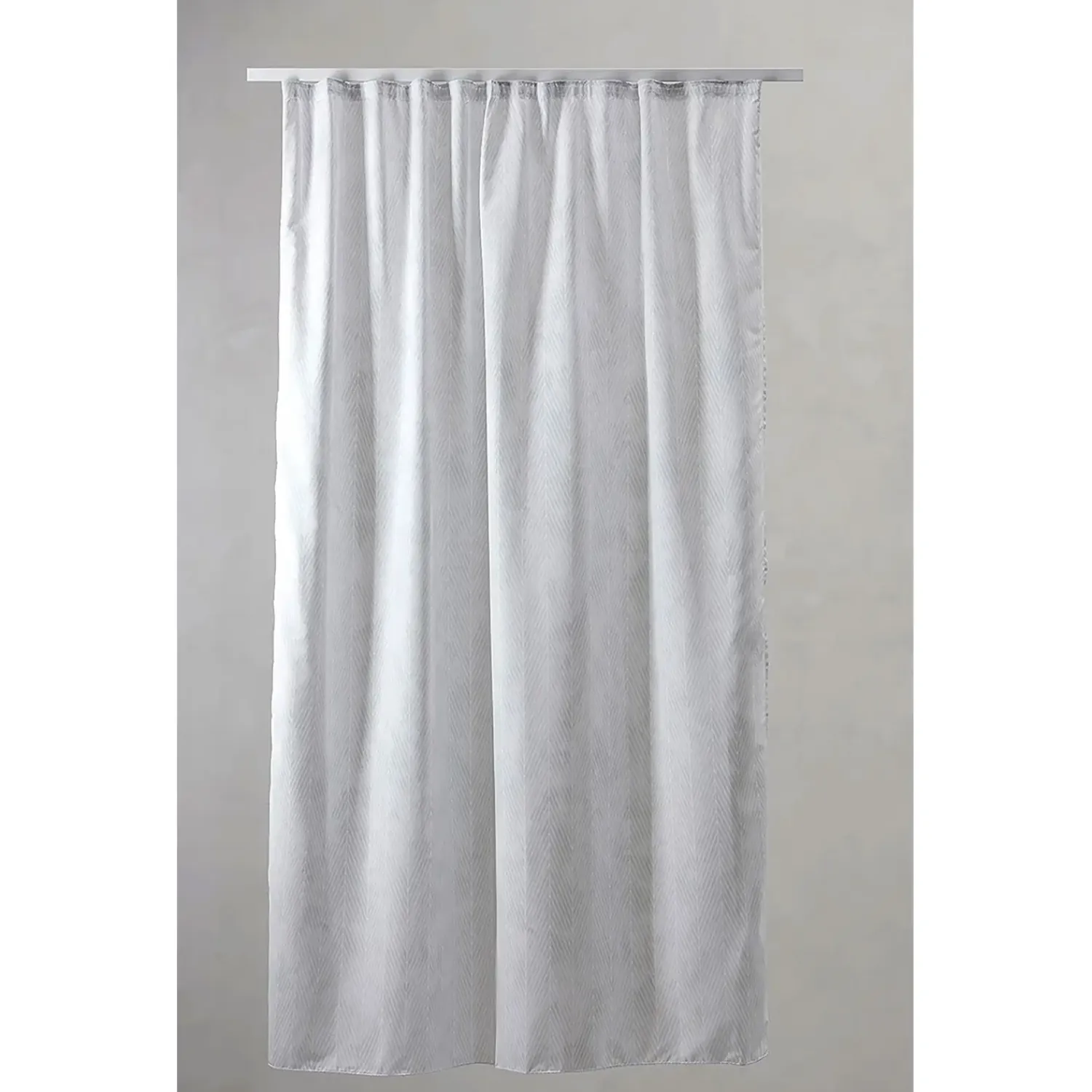 Dette badeforhæng i lys grå med sildebensmønster kombinerer praktisk funktionalitet med et roligt udtryk. Materialet har antibakterielle egenskaber, der gør det særligt velegnet til fugtige badeværelsesmiljøer.