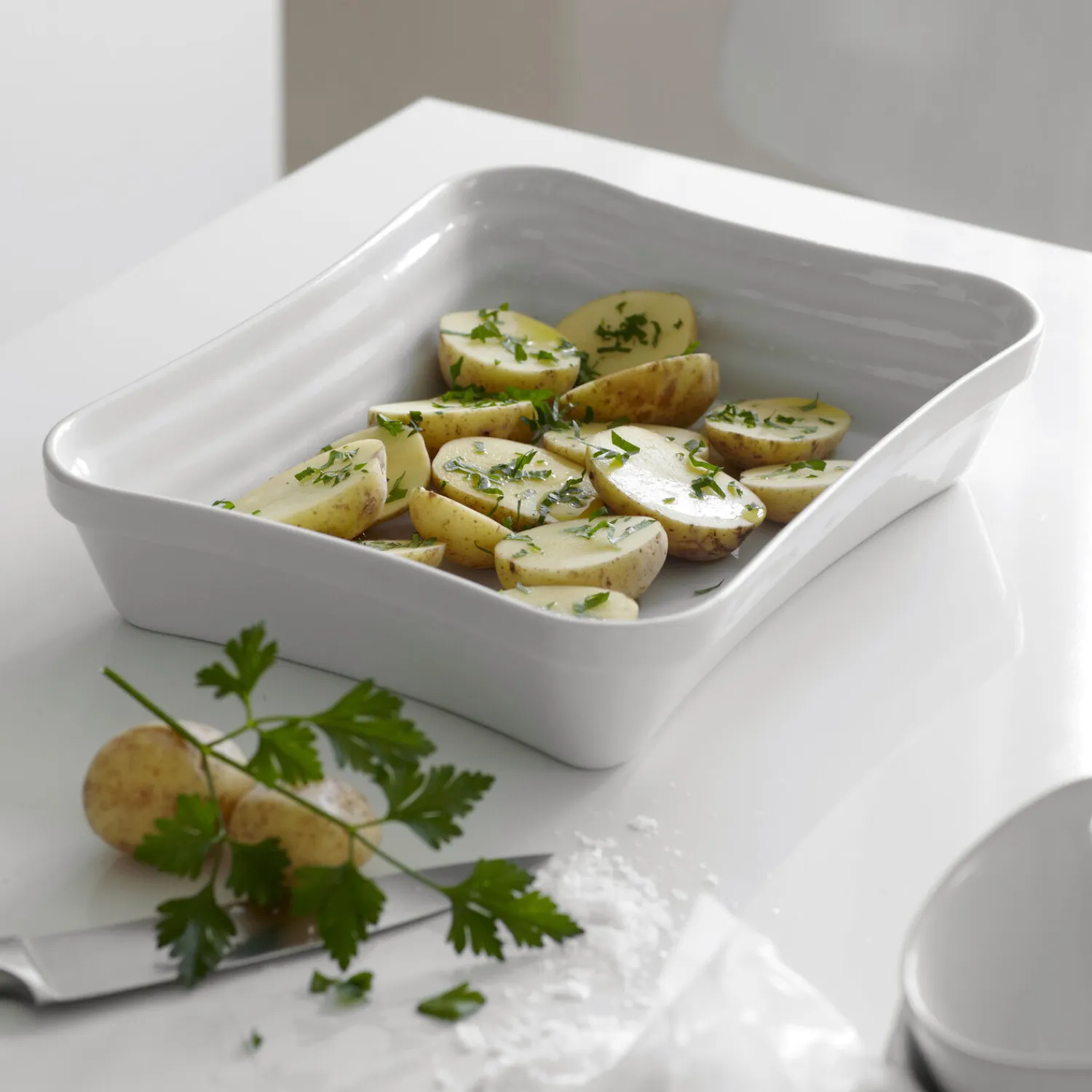 Det hvide porcelæn giver fadet en klassisk fremtoning, der passer til enhver bordopdækning. Materialet er både varmebestandigt og holdbart, så du kan bruge fadet til både tilberedning og servering af dine retter.