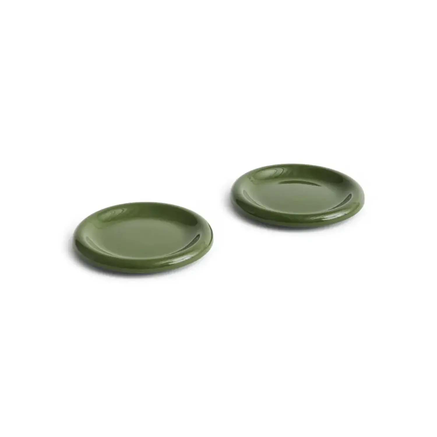 Dette sæt fra HAY giver dig to grønne tallerkener lavet i Portugal. De er fremstillet af ler med en blank overflade, som gør dem holdbare og nemme at rengøre i din travle hverdag.
