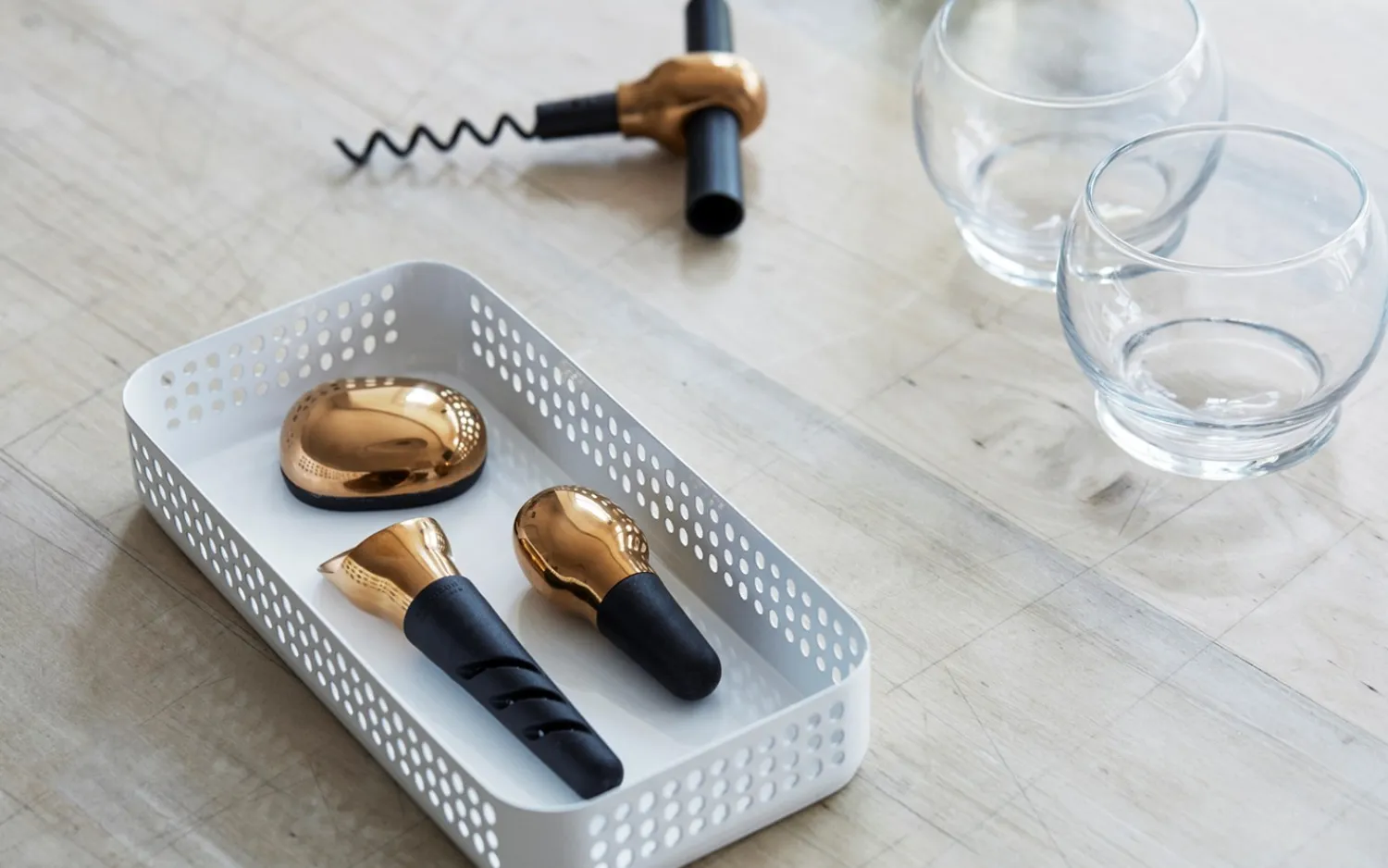 Basic er let og behagelig at holde og den satinagtige overflade gør, at vinen løber let. Servér et velsmagende glas vin for dig selv og dine venner med hjælp fra denne unikke familie af vintilbehør.