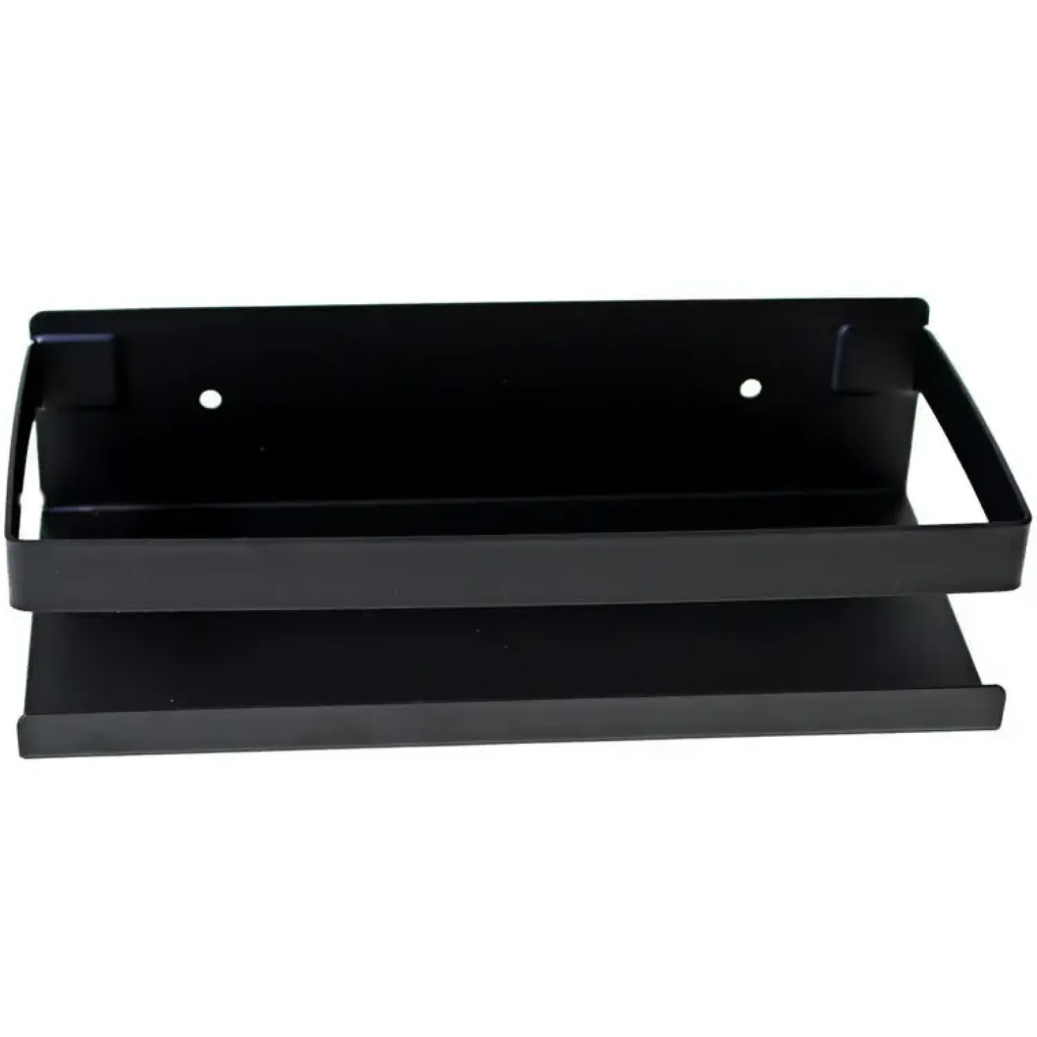 Moudhome BATH-hylden i sort rustfrit stål tilbyder en elegant løsning til dit badeværelse eller køkken. Med sin kompakte størrelse og dobbeltlagsstruktur kombinerer denne hylde praktisk opbevaringsplads med et sofistikeret design. Hylden har en dobbeltlagsstruktur med hævet forkant, hvilket giver både stabilitet og funktionalitet. Den hævede forkant på 5,8 cm fungerer som en effektiv barriere, der forhindrer genstande i at glide af i fugtige miljøer, hvilket gør den ideel til brusekabinen eller over håndvasken.