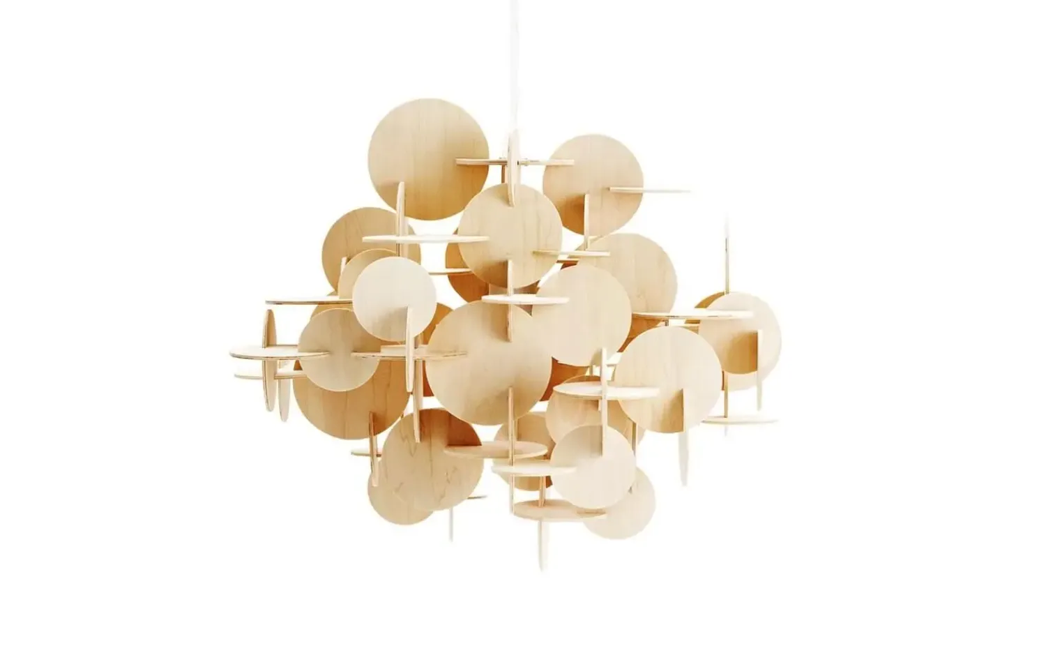 De forskellige størrelser skiver er omhyggeligt placeret, så de danner et dynamisk mønster. Dette giver lampen en særlig karakter, der både fungerer som lyskilde og som et kunstnerisk element i din indretning.