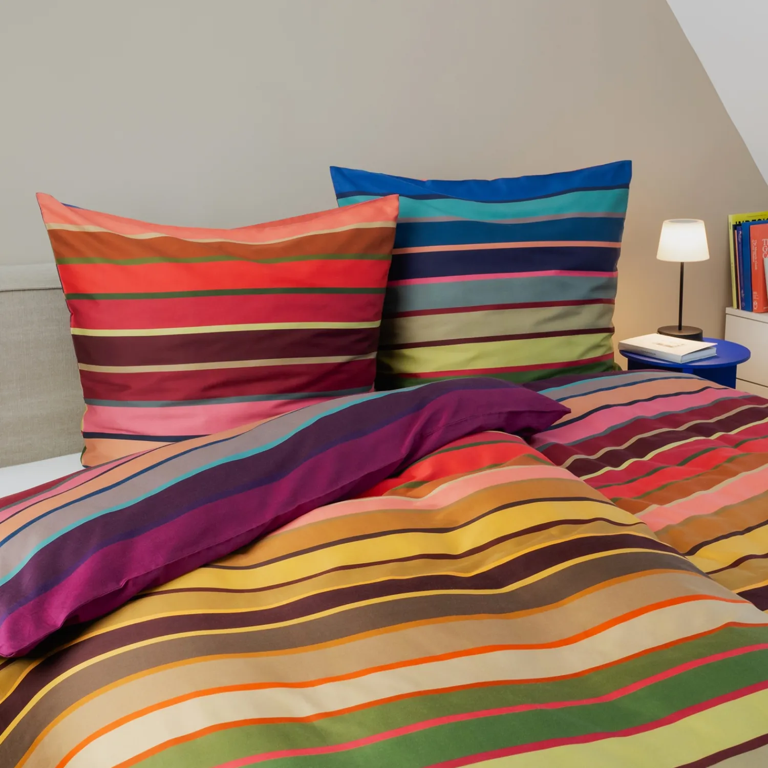 Ascona sengetøjet er fremstillet af materialer i høj kvalitet, hvilket kan bidrage til en behagelig og komfortabel søvn nat efter nat. De vandrette striber i forskellige farver skaber et moderne og sofistikeret udtryk, der kan passe ind i mange forskellige soveværelsesindretninger. Farverne er udvalgt for at skabe en harmonisk balance, der både kan virke indbydende og afslappende. Sengetøjets design gør det muligt at skifte look i soveværelset uden at lave omfattende ændringer i indretningen.