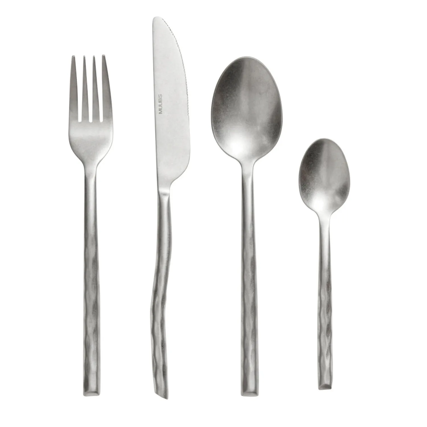 Bestikket er lavet i rustfrit stål og kan tåle opvaskemaskine, men vil med tiden opnå en smuk patina. Det anbefales at vaske bestikket i hånden for at beholde den smukke overflade.