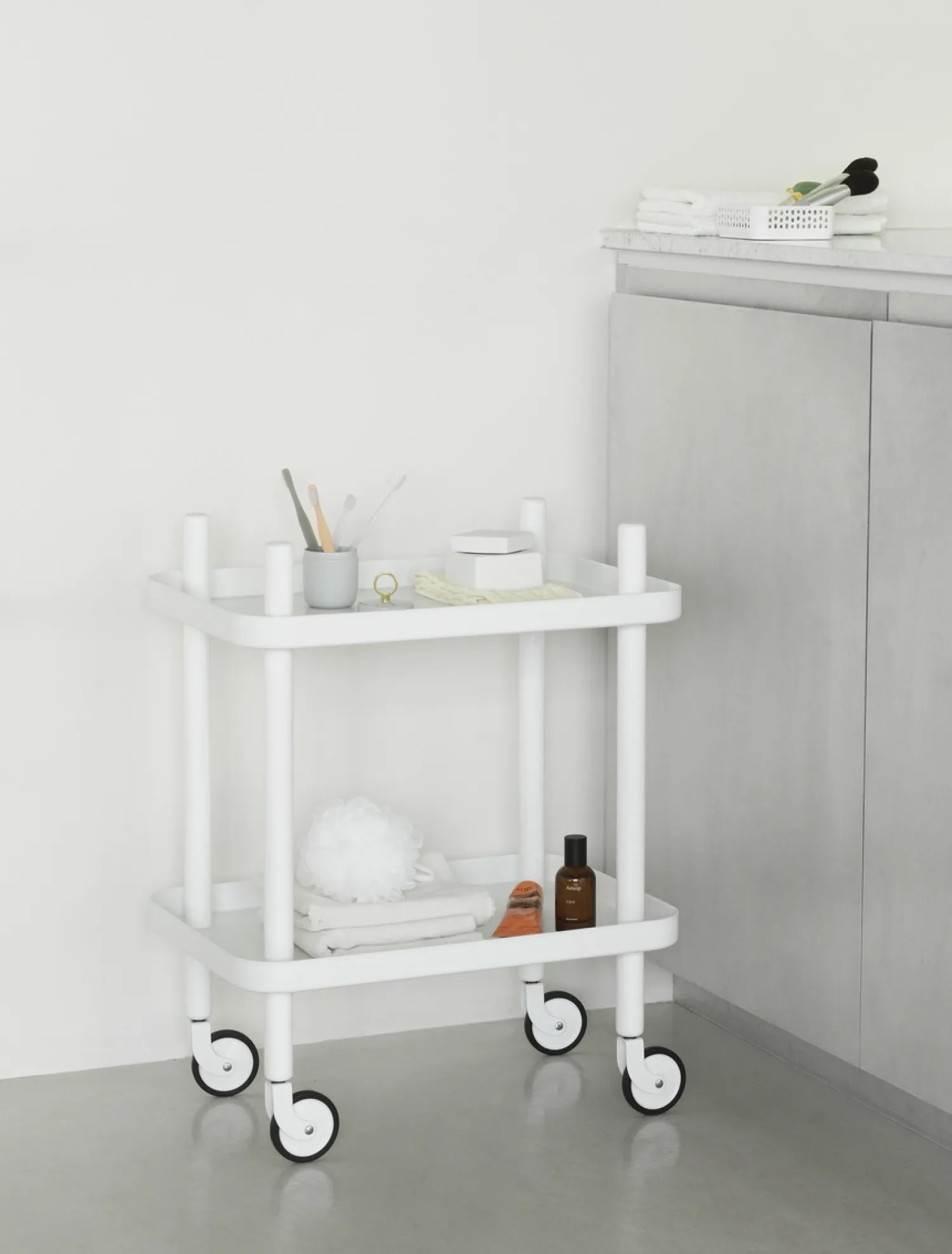 Siden 2012 har det bedst sælgende mobile sidebord, Block, været på vej mod titlen som en moderne designklassiker. Designer Simon Legald blev inspireret af det klassiske trolleybord, som han har opdateret og lavet til sit eget med enkle, dog virkningsfulde midler. Blocks afrundede form, kontrasterende materialer og kombinationen af håndværk og industri efterlader designerens signatur på designet og giver bordet sit unikke udtryk.Block har ingen bestemt retning og kan bruges fra alle fire sider. Det er et alsidigt møbel med mange forskellige funktioner i hjemmet. Brug Block-bordet som serveringsvogn eller sidebord, i køkkenet, som natbord, til hjemmebaren eller på børneværelset, og brug Block-hylden i flere rum, fra din entré eller køkken til dit sommerhus .Med sit minimalistiske design kan Block ændre karakter alt efter, hvilke omgivelser den er placeret i, og hvordan den bruges.Design: Simon Legald