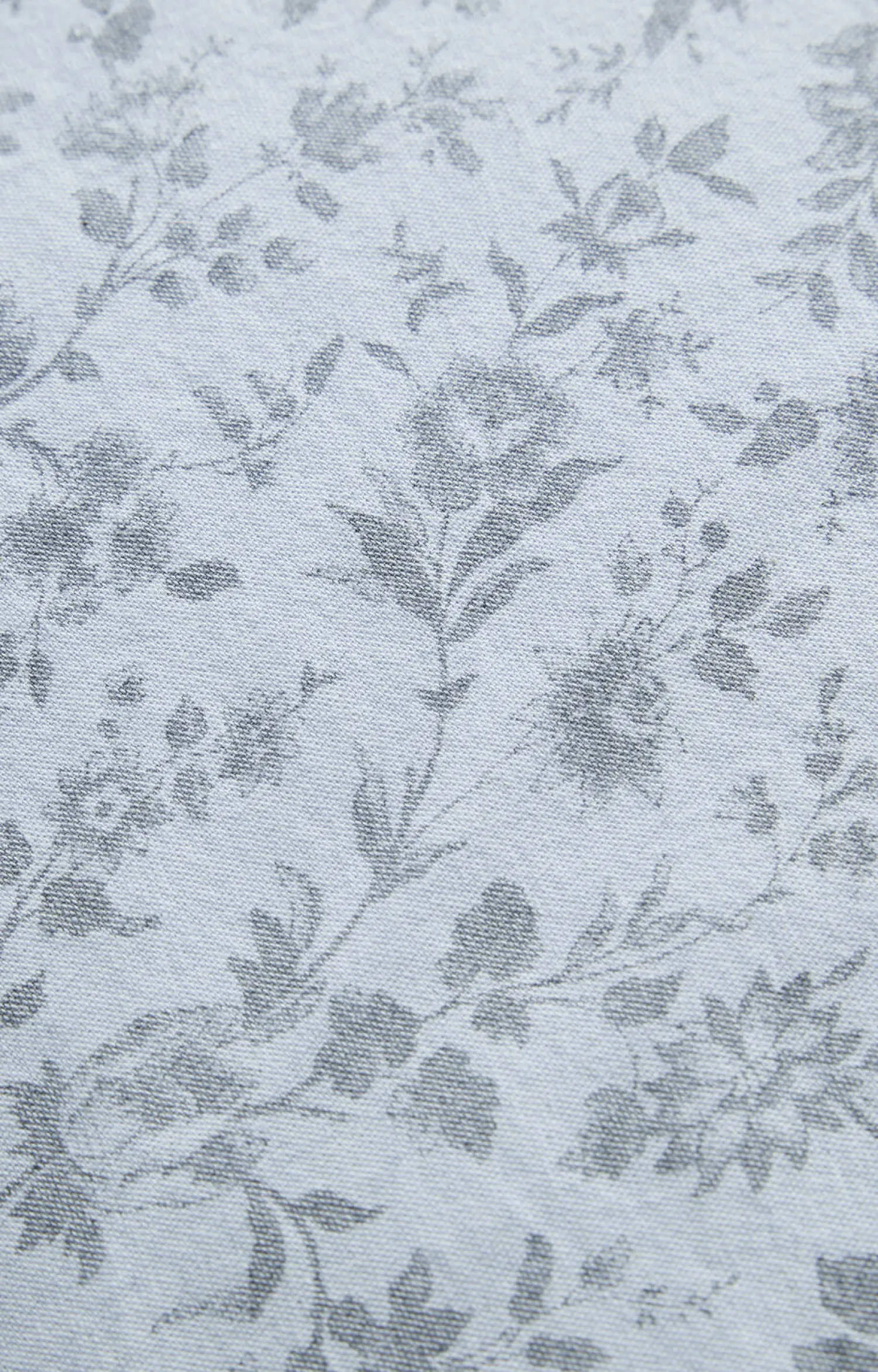 Det tidløse blomstermønster i støvet blå tilfører dit soveværelse et roligt og harmonisk udtryk. Sengetøjet er fremstillet i Portugal, hvor tekstiltraditionen går mange generationer tilbage, og hver detalje er nøje gennemtænkt.