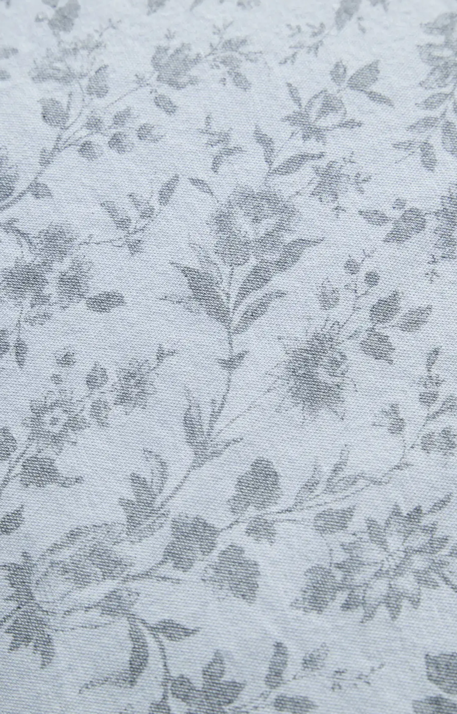 Det støvede blå blomstermønster tilfører et roligt og vintage-inspireret udtryk til dit soveværelse. Det er fremstillet i Portugal med fokus på kvalitet og håndværk. Sættet består af både dynebetræk og pudebetræk i matchende design.