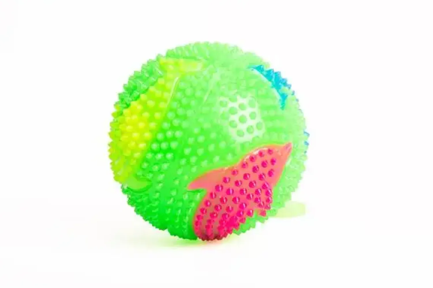 Denne bold er designet med fokus på sjov og interaktiv leg. Den piggede overflade og den lille størrelse gør den nem at gribe for børn. Det indbyggede lys tilføjer et element af overraskelse og glæde til hvert kast, hvilket kan gøre legen mere engagerende.