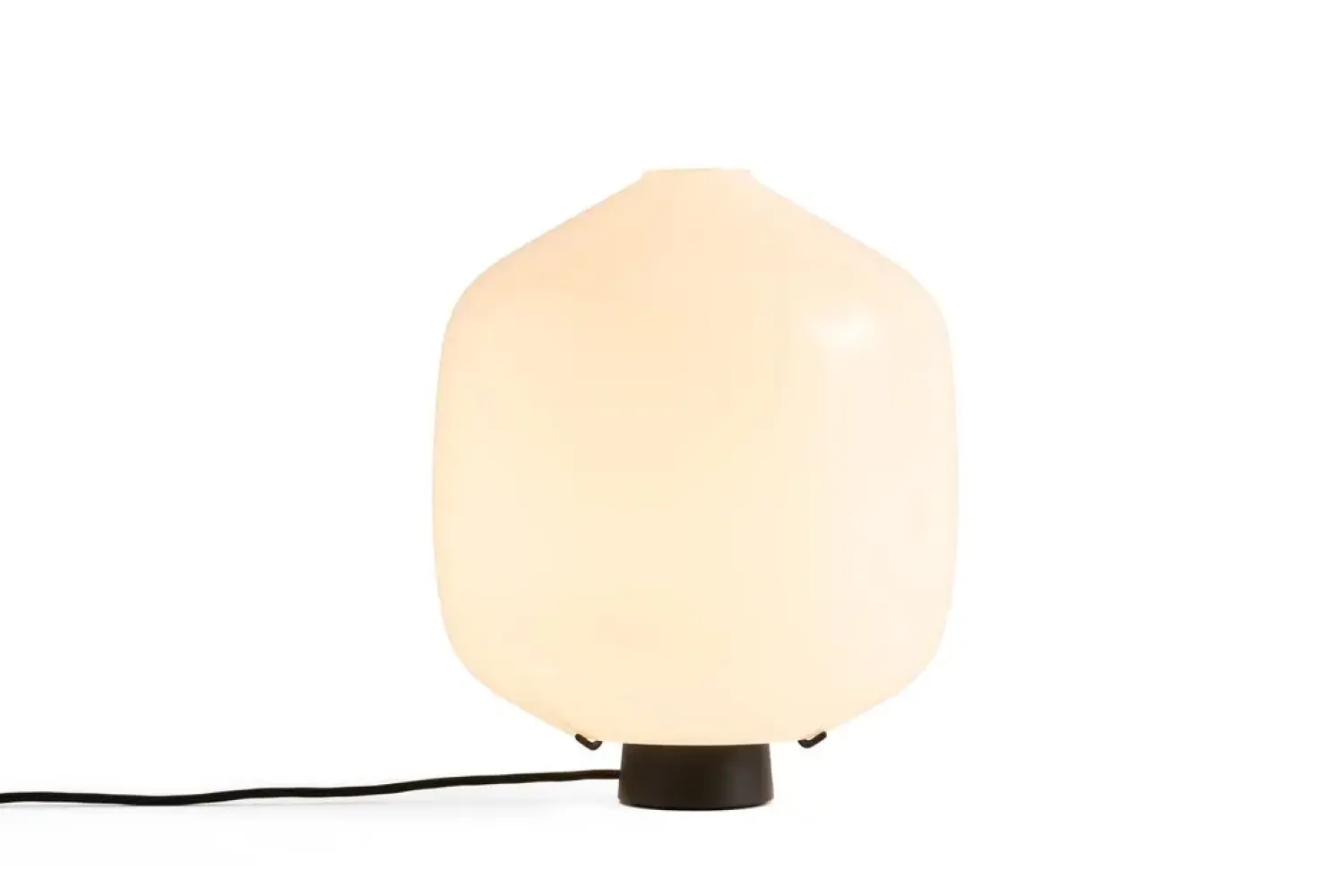 Denne bordlampe fra HAY er fremstillet i mundblæst opalglas med en mat overflade, der giver en jævn lysfordeling. Med målene 36 x 36 x 38 cm passer den til forskellige rumstørrelser og kan anvendes som både arbejds- og stemningsbelysning.