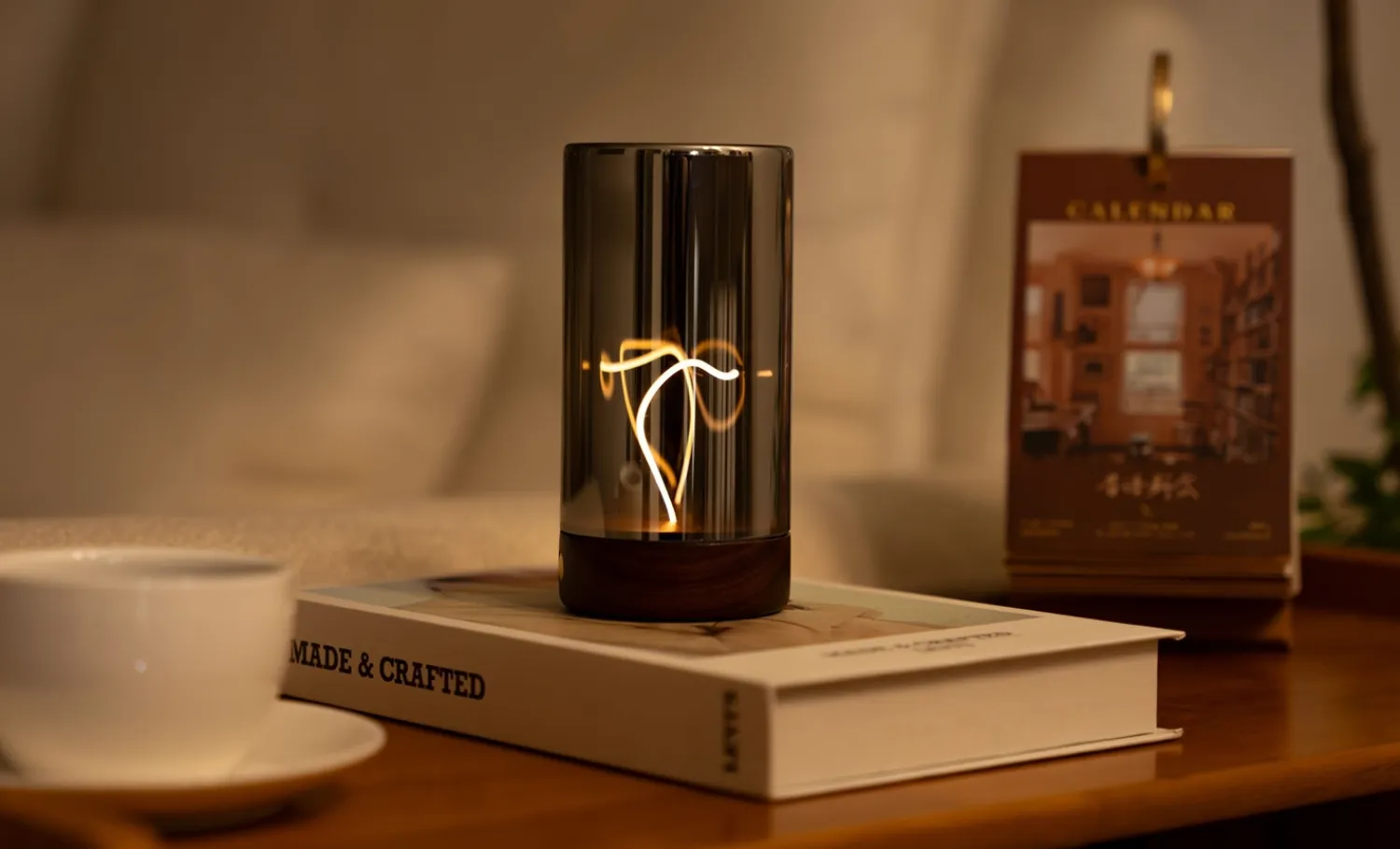 Denne bordlampe er håndlavet med valnød, glas og magnet, der tilsammen skaber et funktionelt design med naturlige materialer. Lampen leverer 144 lumen, hvilket giver en behagelig stemningsbelysning til dit hjem eller kontor, og med en driftstid på 18 timer kan du bruge den hele dagen uden hyppig opladning.