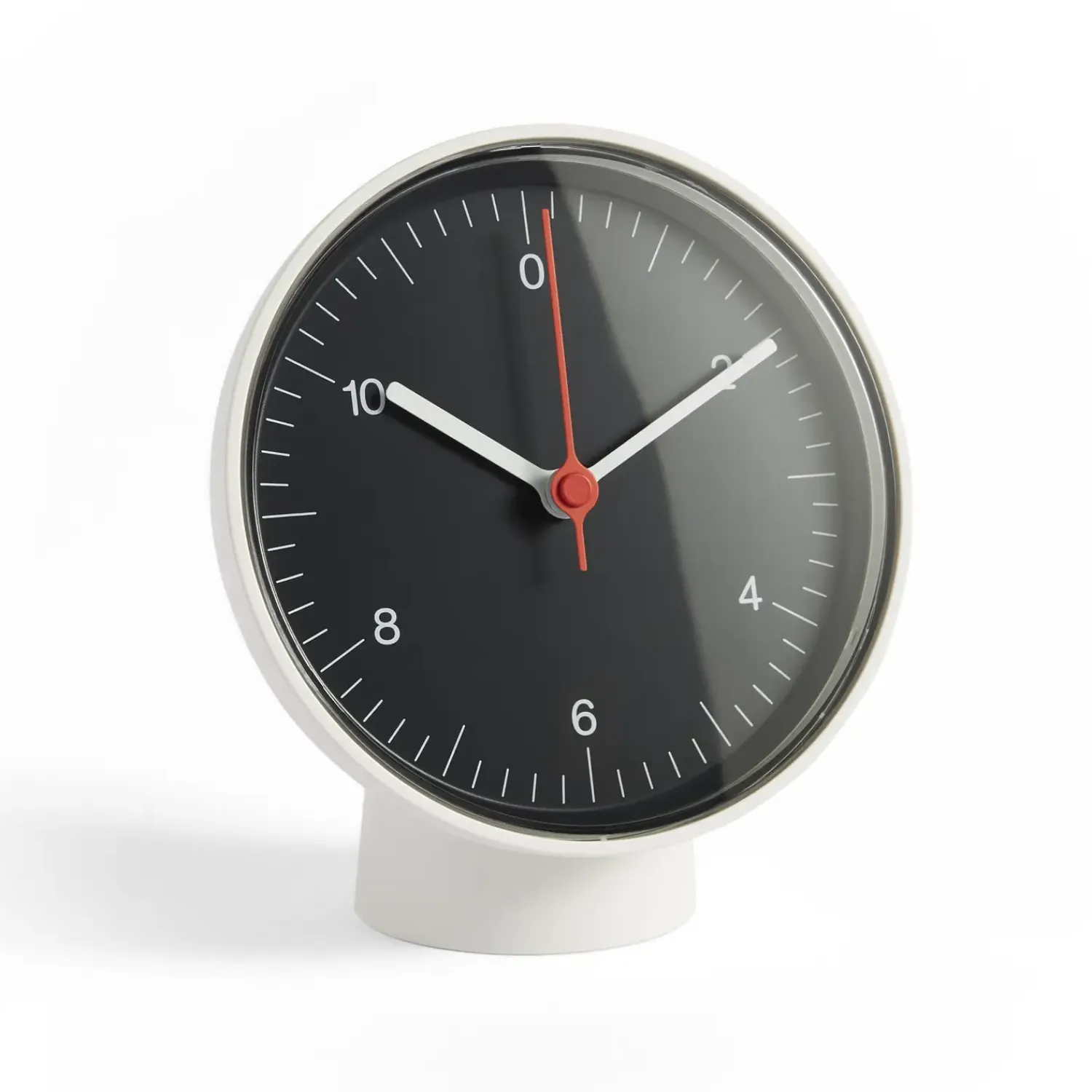 Dette HAY Bordur kombinerer praktisk tidtagning med fleksibel montering. Med en lydløs sekundviser får du ro til koncentration, mens den sorte urskive med hvide tal sikrer nem aflæsning af tiden døgnet rundt.