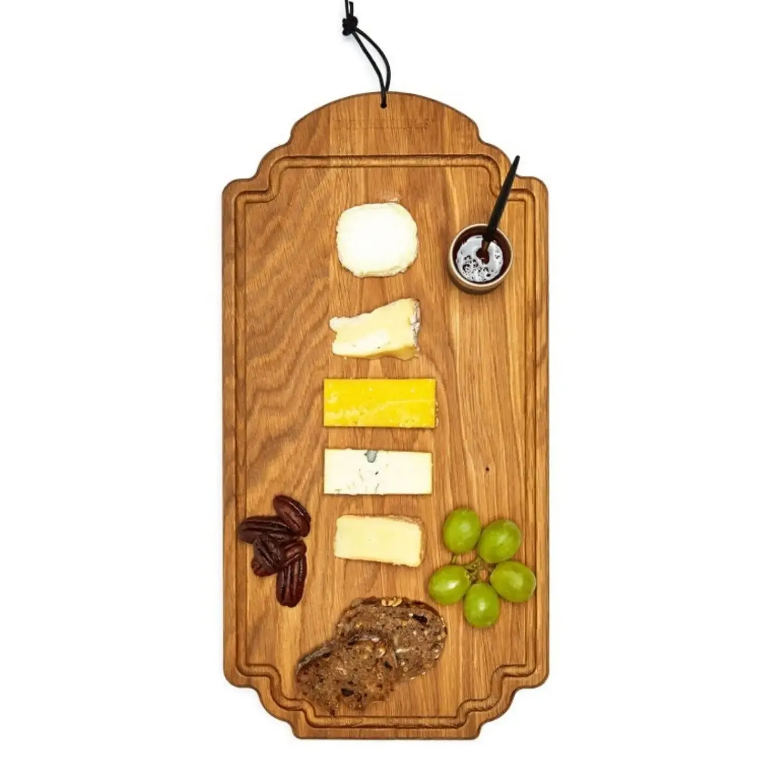 Disse massive træbrætter kan bruges på begge sider; en med en saftrille til skæring, mens den slanke side bevares for en luksuriøs præsentation. Smukt at kombinere forskellige former og materialer. De er nemme at opbevare og nemme at rengøre, du behøver ikke at bruge opvaskemaskinen. Færdiggjort med 100% naturlig vindruekerneolie og bivoks. Brug på 2 sider: den ene side til at skære, den anden side til en luksuriøs præsentation. Ikke til brug i mikrobølgeovn, ovn eller opvaskemaskine. Nem at rengøre. Lavet i Holland. 100% massiv eg. Størrelse: 18×38 cm