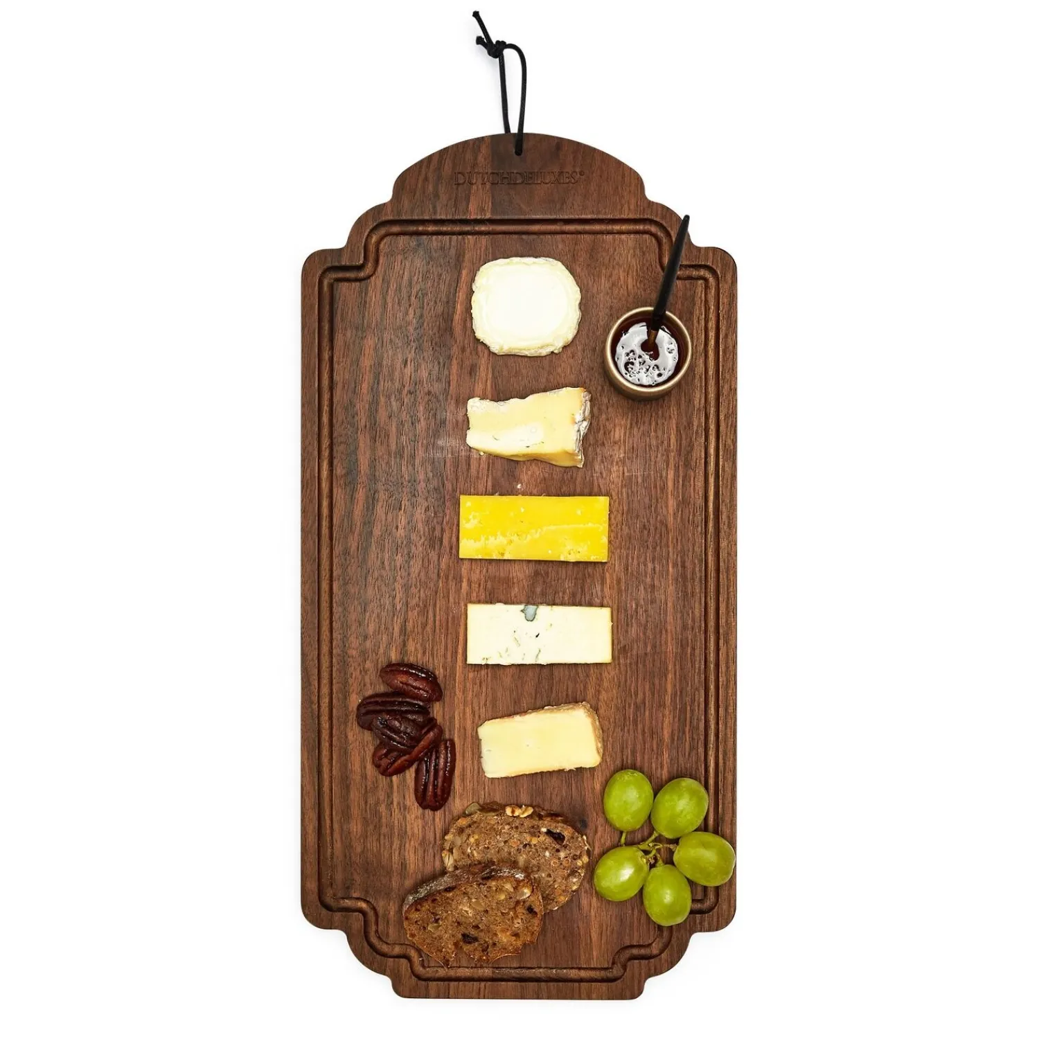 Disse massive træbrætter kan bruges på begge sider; en med en saftrille til skæring, mens den slanke side bevares for en luksuriøs præsentation. Smukt at kombinere forskellige former og materialer. De er nemme at opbevare og nemme at rengøre, du behøver ikke at bruge opvaskemaskinen. Færdiggjort med 100% naturlig vindruekerneolie og bivoks. Brug på 2 sider: den ene side til at skære, den anden side til en luksuriøs præsentation. Ikke til brug i mikrobølgeovn, ovn eller opvaskemaskine. Nem at rengøre. Lavet i Holland. 100% massiv valnød. Størrelse: 18×38 cm