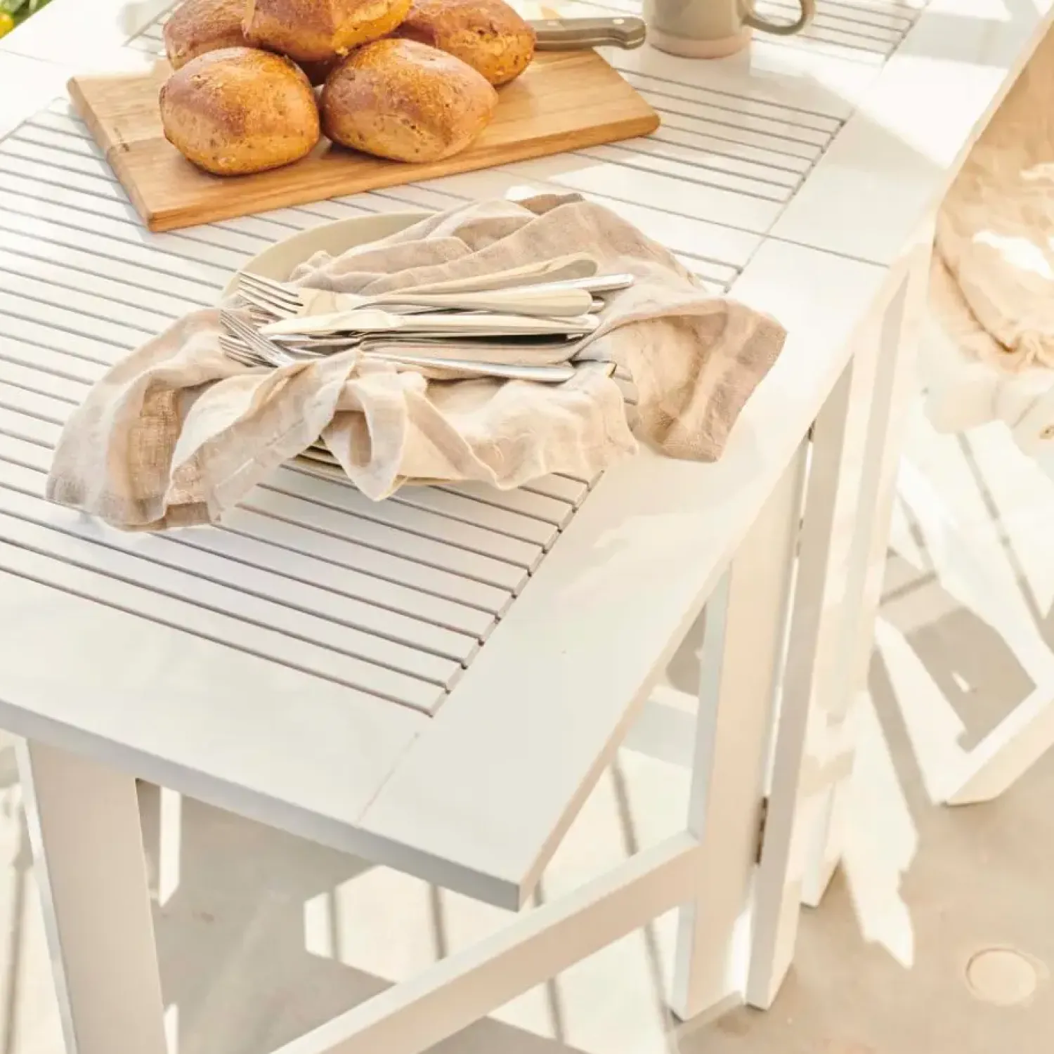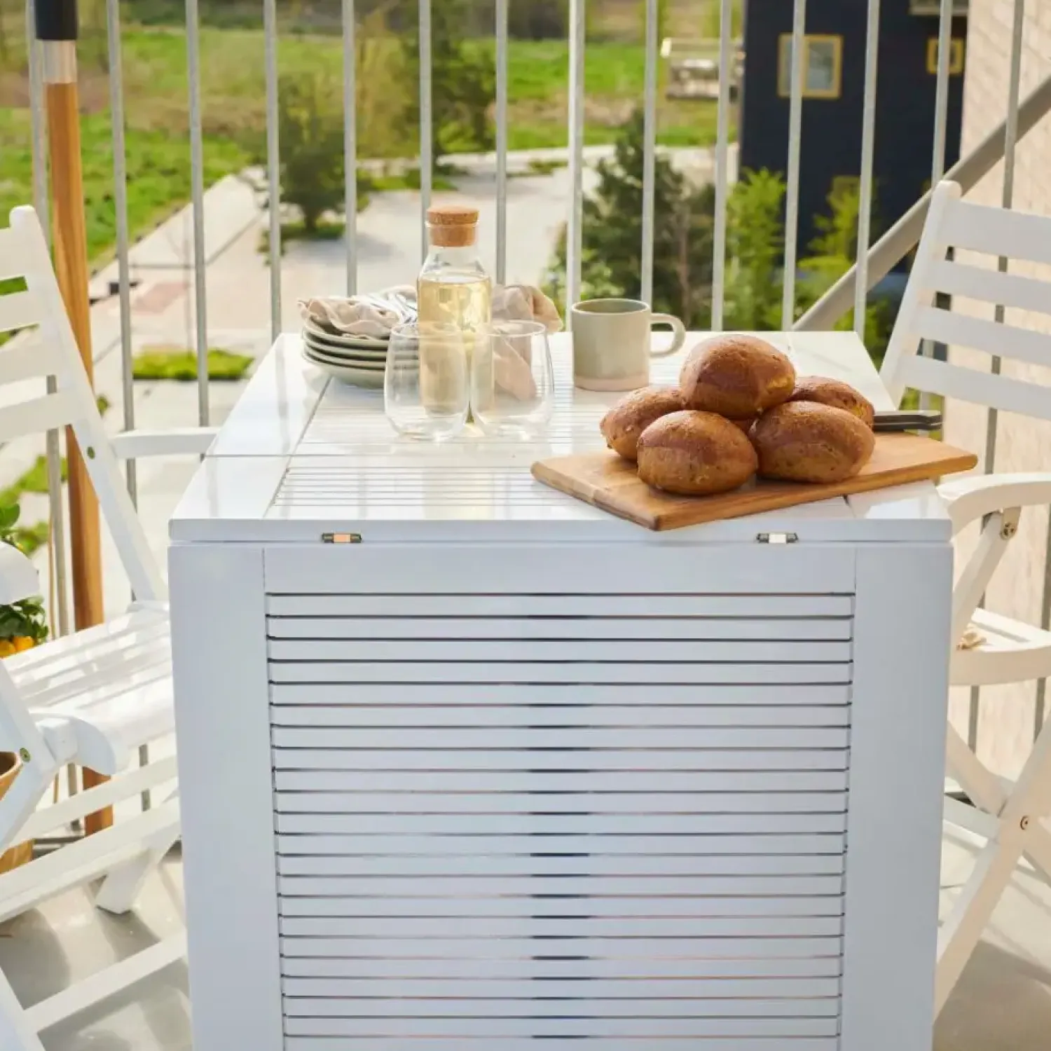 Dette klapbord er designet til at imødekomme behovet for fleksibilitet i udendørs møbler. Det kan nemt foldes sammen og opbevares, hvilket gør det velegnet til balkoner, terrasser eller mindre haver. Den rektangulære form sikrer optimal udnyttelse af pladsen, mens den hvide finish tilfører et lyst og luftigt præg til dit udendørs område.