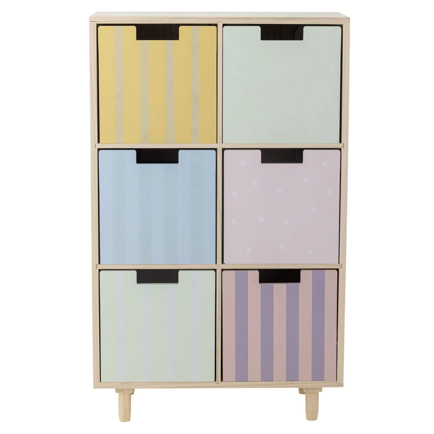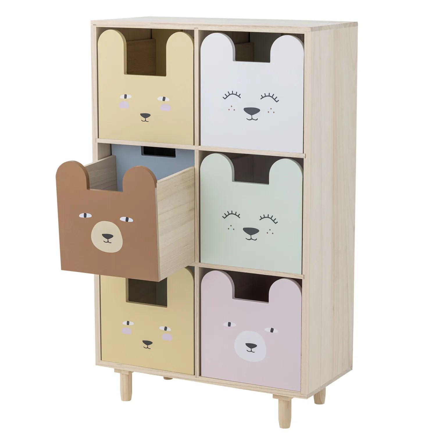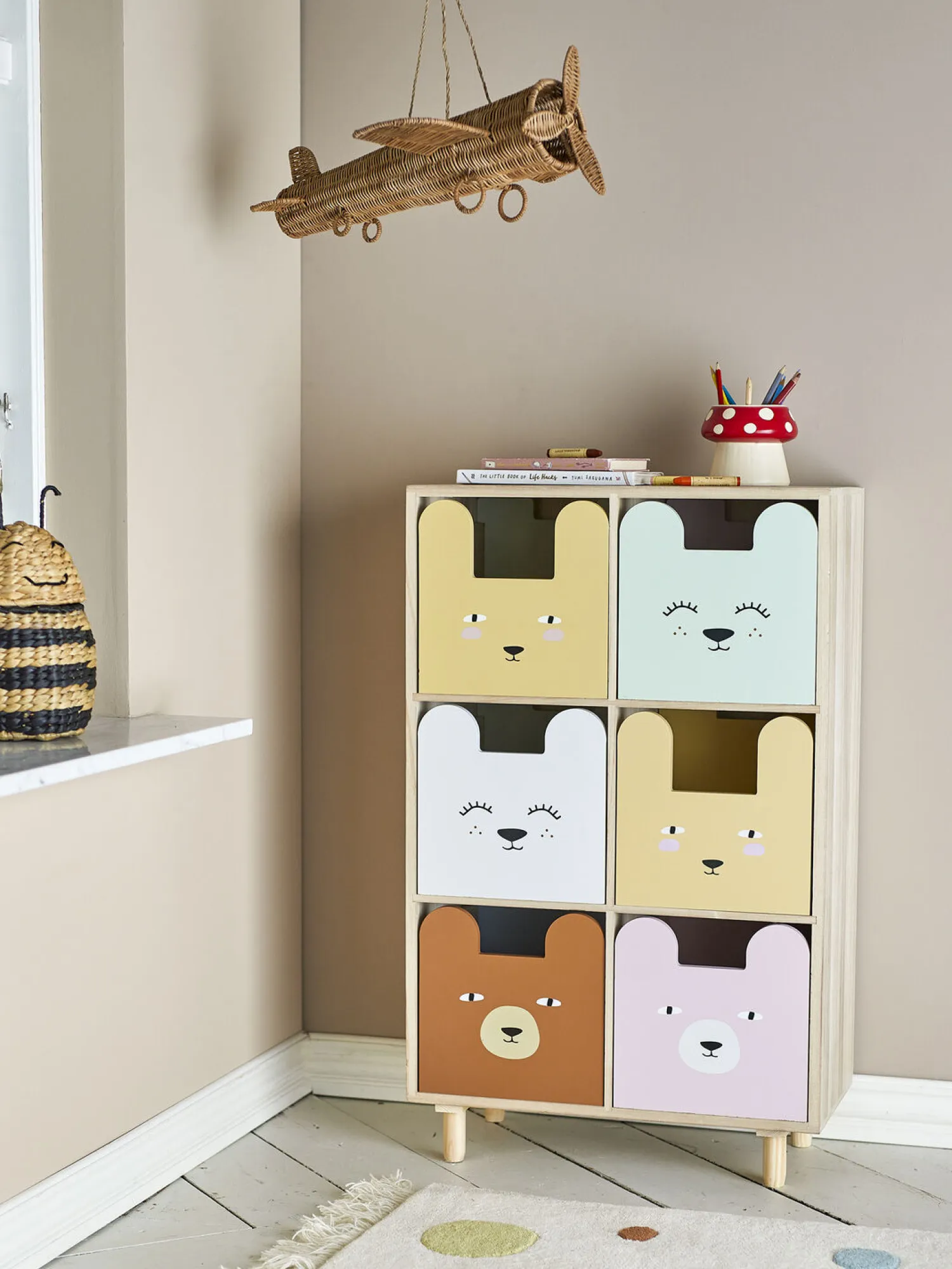 Denne reol med seks vendbare skuffer giver dig mulighed for at skifte mellem sjove dyreansigt og rolige mønstre i pastelfarver. Du kan placere reolen både lodret og vandret, så den passer præcist til dit rum.