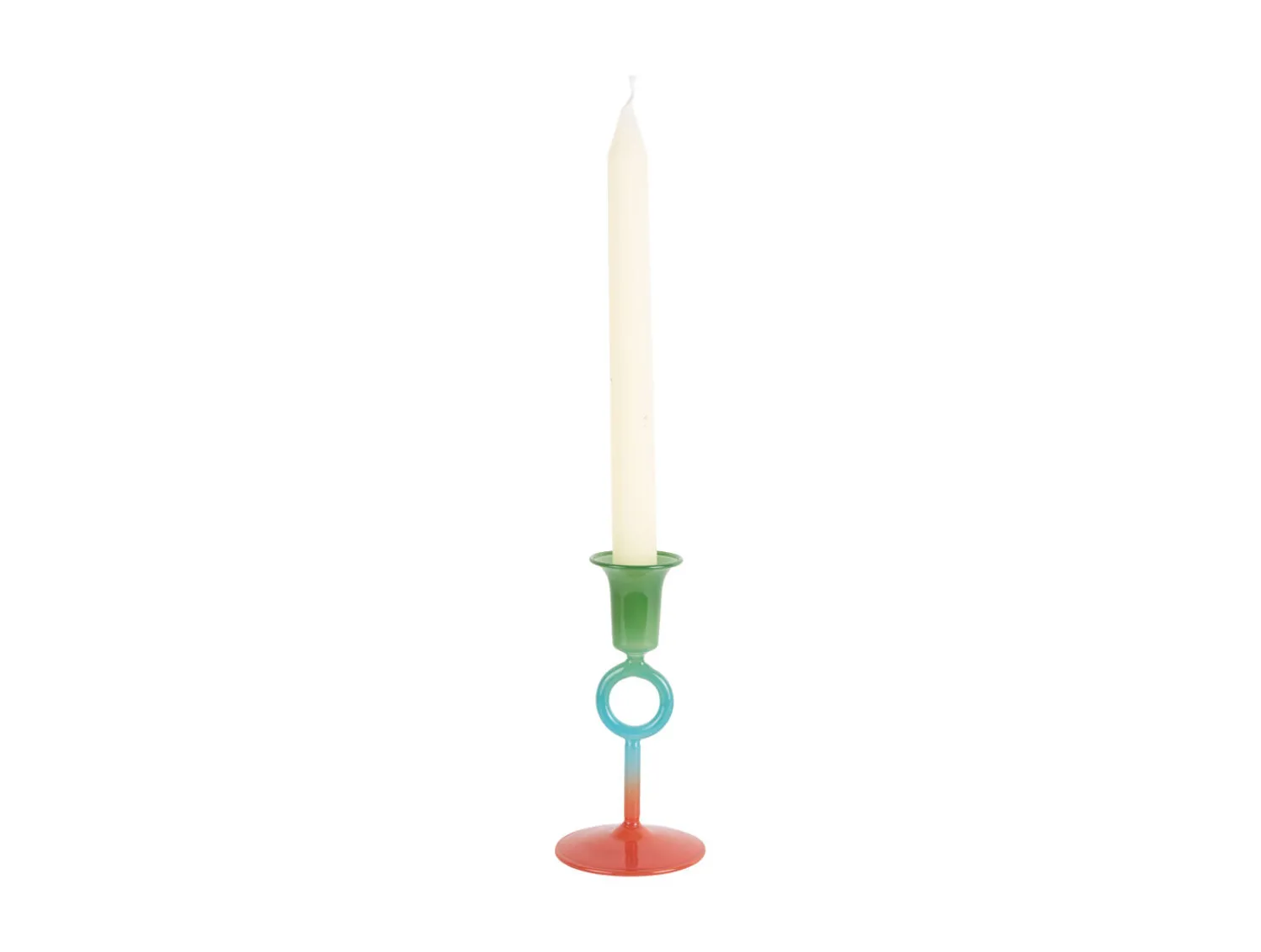 Lysestagen passer til kreative individer, der værdsætter dristige designvalg. Dimensionerne på 15 cm i højden og 7,5 cm i diameter gør den velegnet til både borde og hylder. Glassets naturlige egenskaber betyder, at den er nem at rengøre, og det flerfarvede design fungerer som et selvstændigt dekorationselement i moderne boligmiljøer.
