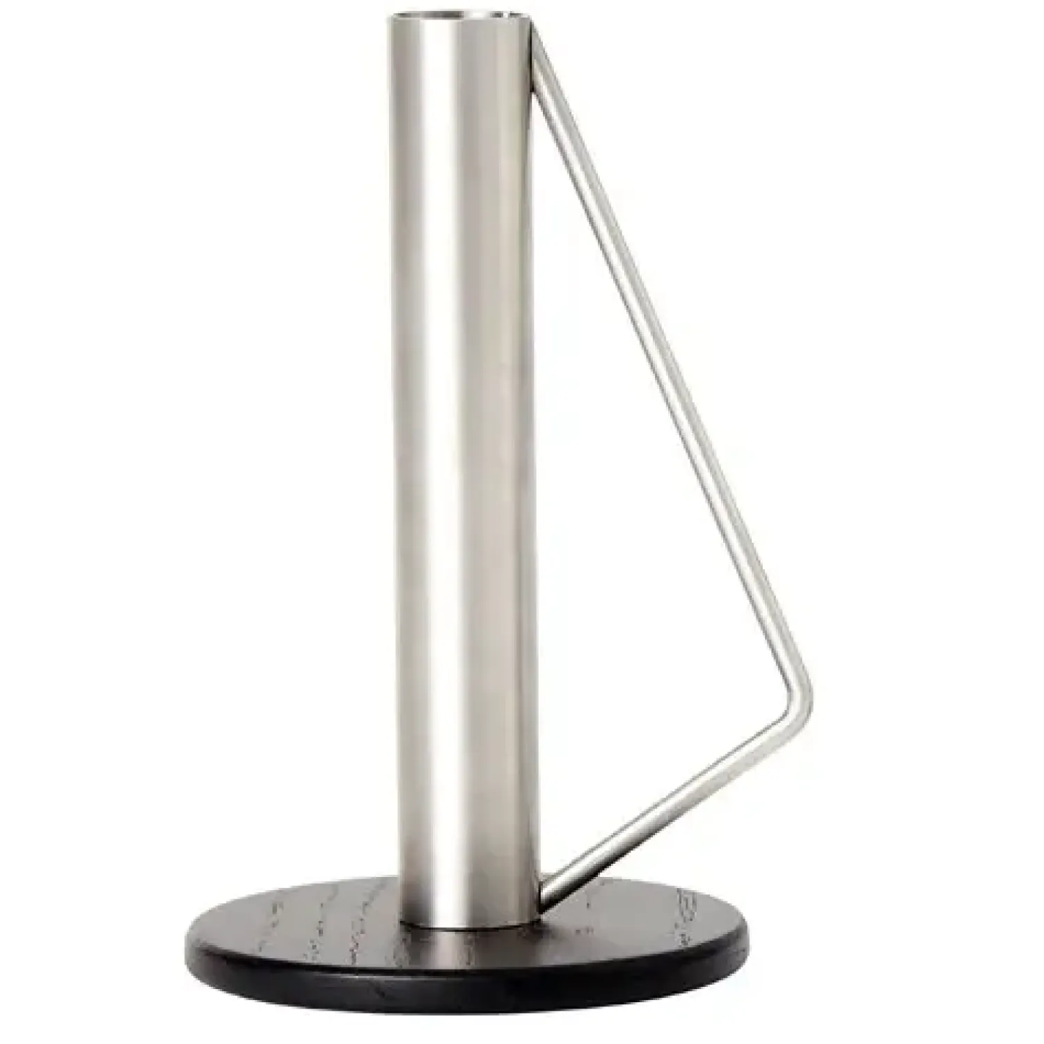 Elegant lysestage i large fra Candleholder-serien. Smukt design i flot materialekombination, hvor lysestagens fod er i sort træ, mens selve lysestagen er i børstet stål. Serien er designet af danske Julie Damhus, der har hentet inspiration fra den gamle kirkestage.