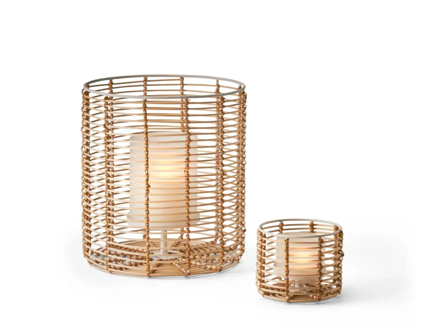 Philippi – Cane tealight holder S har en cylindrisk form med et gittereksteriør af bambus, der omslutter et frostet glasinteriør. Glasset er designet til at holde et fyrfadslys og diffusere lyset. Denne kombination af materialer skaber en balance mellem naturlige elementer og moderne design. Gitterværket giver lysestagen et karakteristisk udseende, mens det frostede glas sikrer en blød belysning.
