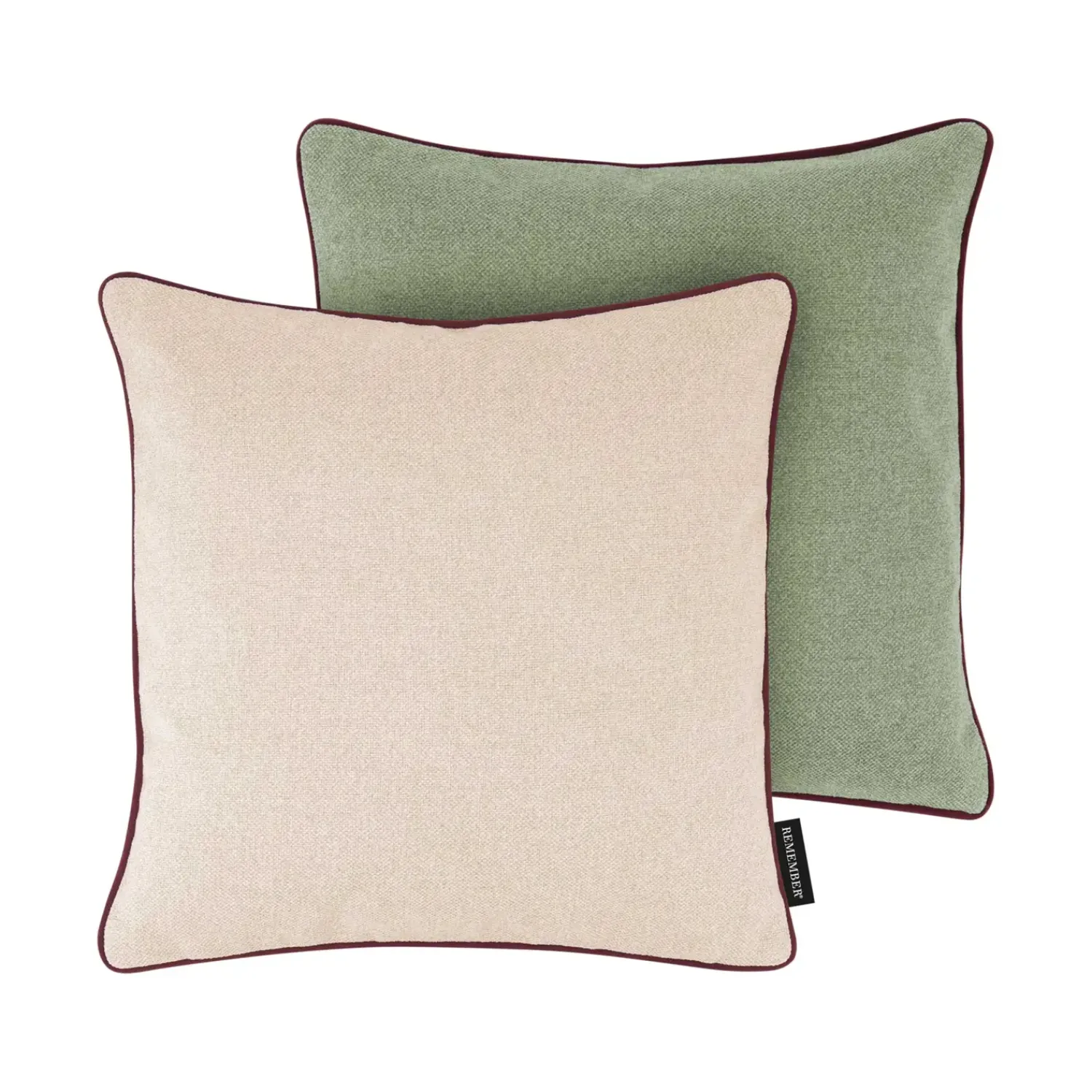 Cashew-puden udmærker sig ved sin omhyggelige konstruktion og gennemtænkte design. Den har synlig piping langs kanterne og en praktisk lynlås. De elegante farver, beige og grøn, er udvalgt til at komplementere en bred vifte af indretningsstile.