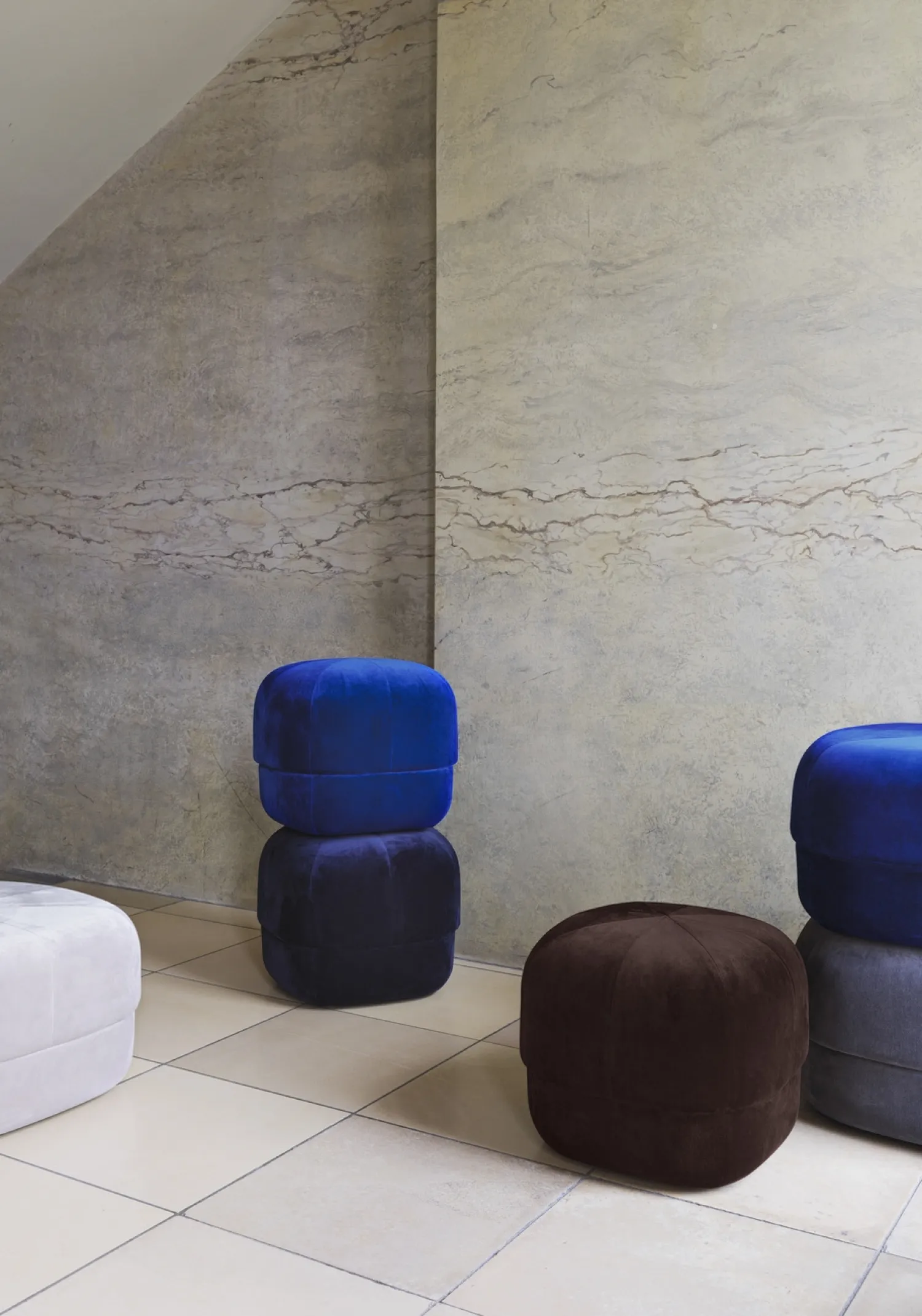 Giv dit hjem farve med Circus puffen; et alsidigt møbel i et eksklusivt, skandinavisk design. Med sin afrundede form og rene, grafiske linjer er Circus en moderne fortolkning af den antikke marokkanske læderpuf. Puffen tillader modsætninger at mødes i et design, hvis stil er stringent og minimalistisk, samtidig med at den har et blødt og indbydende udtryk. Cirkuspuffen består af to forskellige typer skum; fast skum for at bevare formen på puffens nederste del og blødere skum på overdelen for god siddekomfort. Circus er et multifunktionelt møbel og kan fx bruges som forlængelse til din sofa, som siddeplads til sofabord eller som dekorativ siddeplads i soveværelset. Den fås i blødt og luksuriøst tætvævet velour i en række mættede farver, fantastisk til at tilføje dybde, tekstur og varme til interiøret.