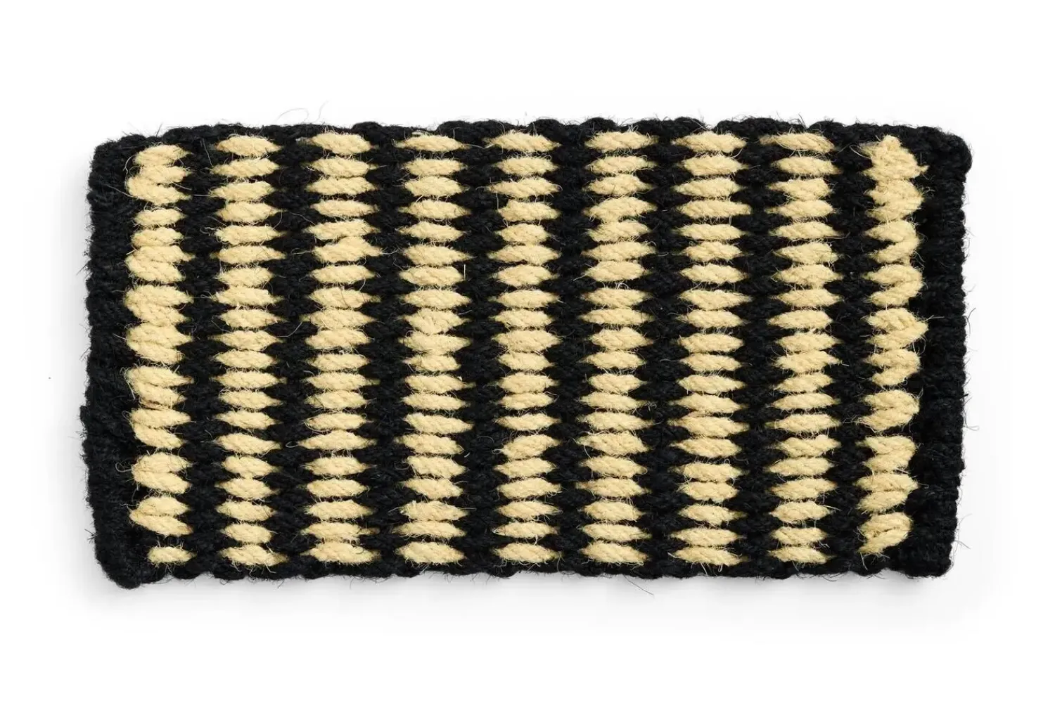 Dørmåtten fra Hay kommer i et klassisk sort og hvidt farveskema. Dette tidløse design passer ind i enhver indretning og tilføjer et strejf af stil ved din hoveddør. Kombinationen af sorte og hvide striber i en bølgeform skaber et dynamisk udtryk, der er både indbydende og elegant.