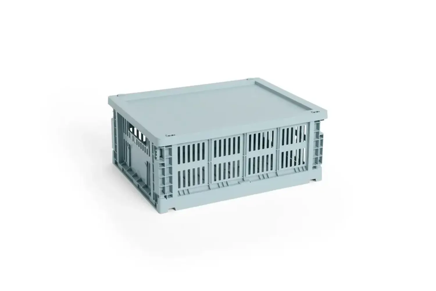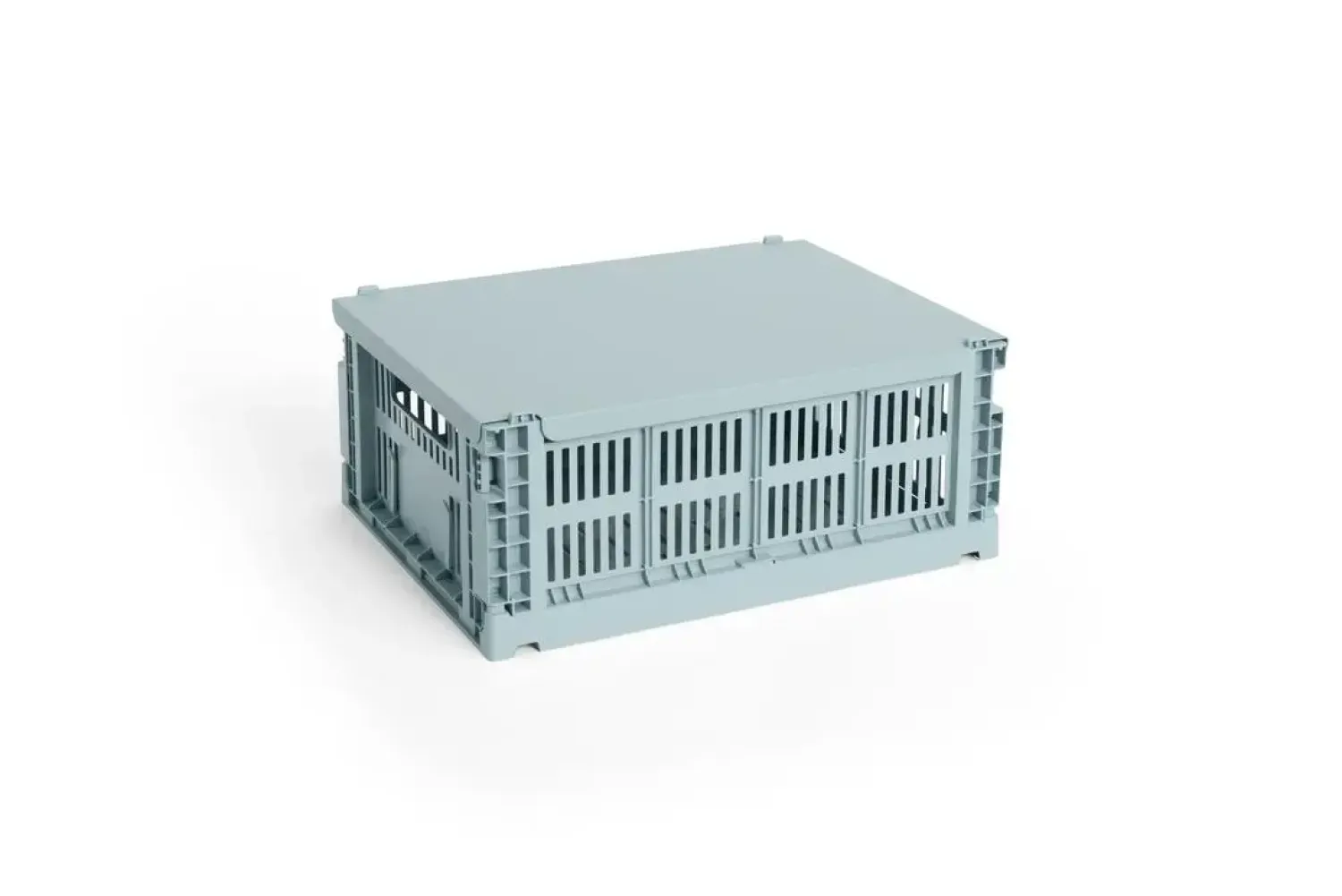 Den støvede blå farve tilføjer et roligt udtryk til din opbevaring, mens den gennemtænkte gitterstruktur sikrer god luftcirkulation. Dette gør kassen særligt velegnet til opbevaring af forskellige typer genstande, hvor ventilation er en fordel.