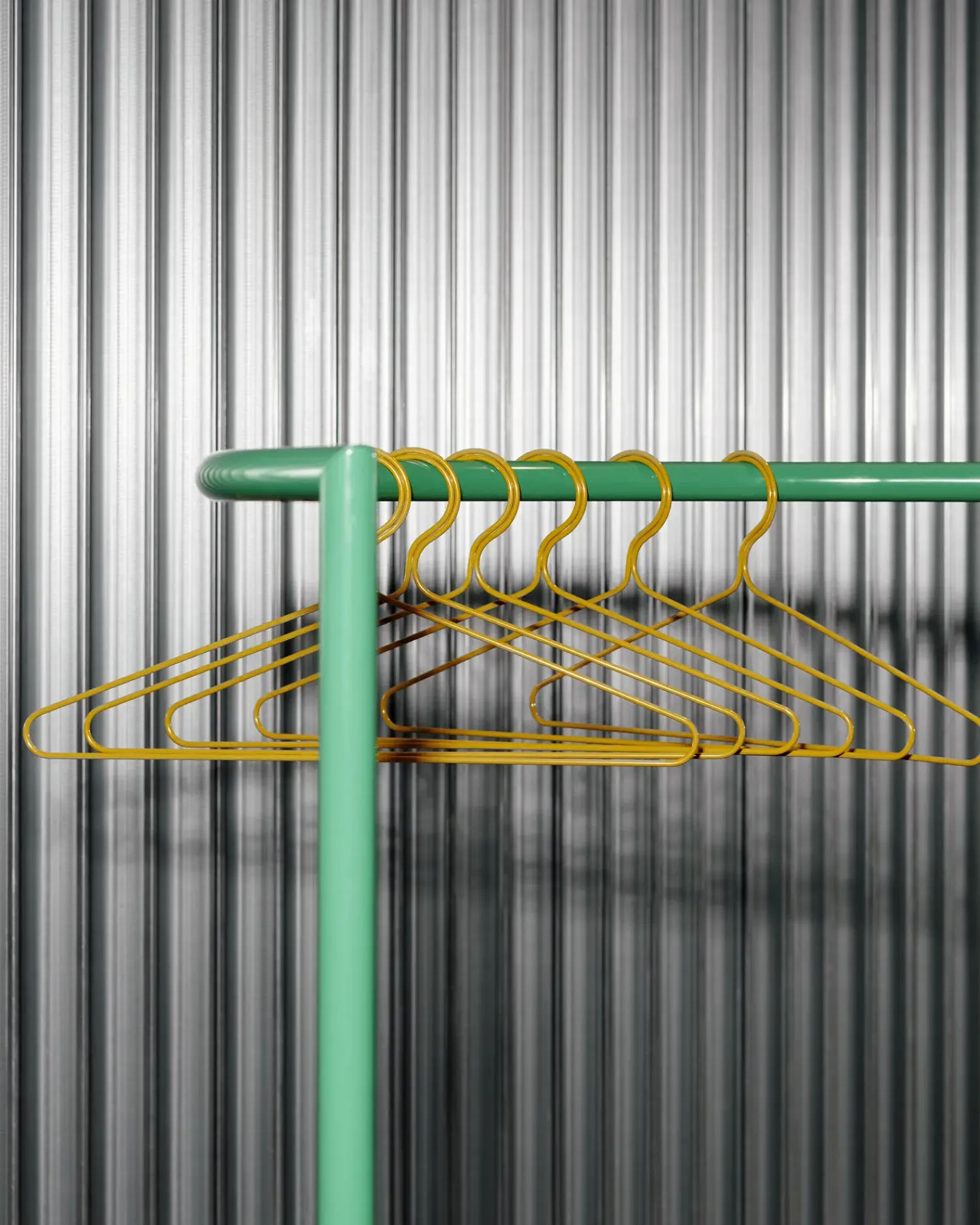 Organisér din garderobe med dette sæt af tre bøjler fra Hay. Med deres spejlfinish og mål på 23 x 43 cm får du en praktisk løsning til dit tøj.