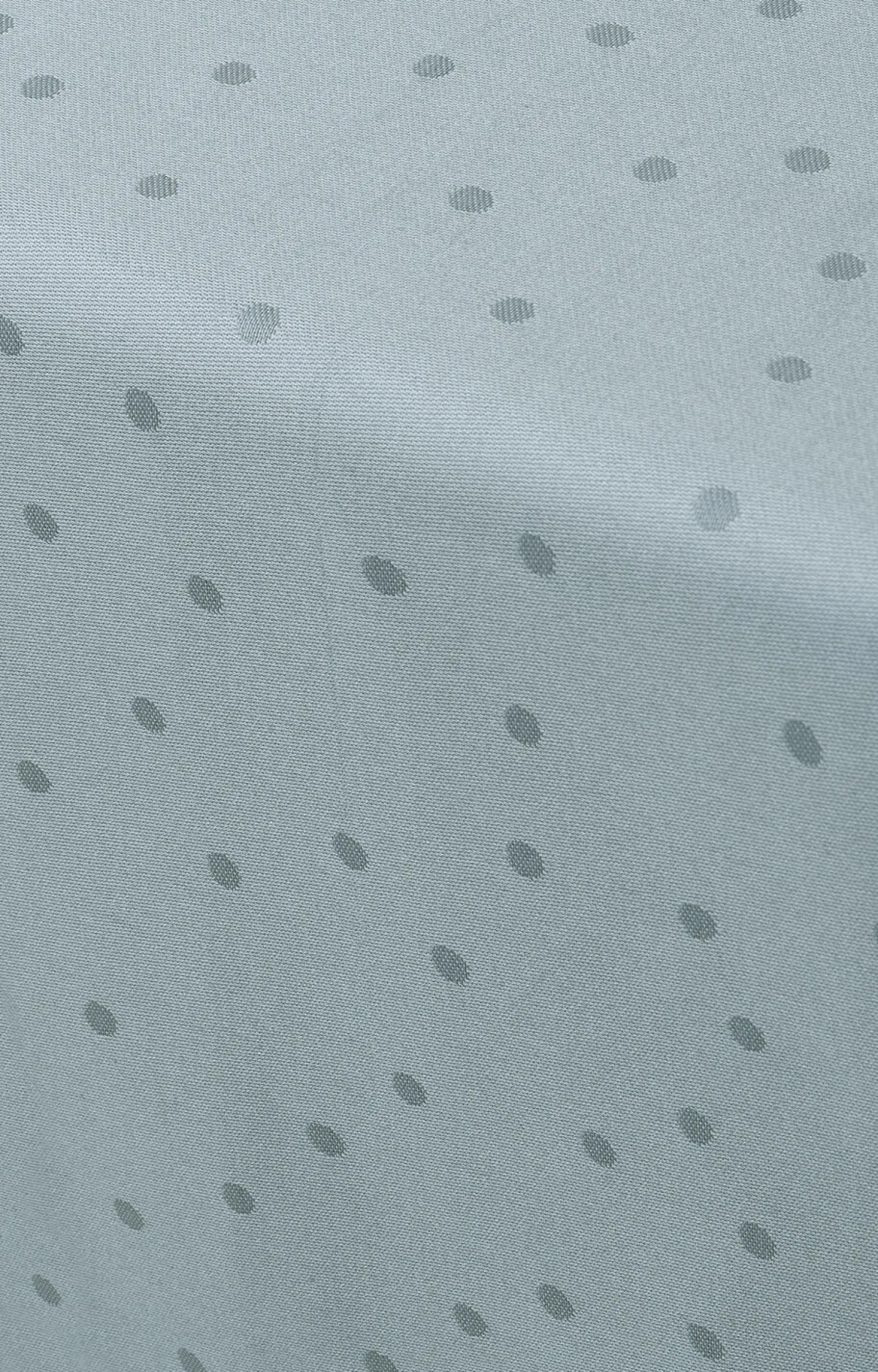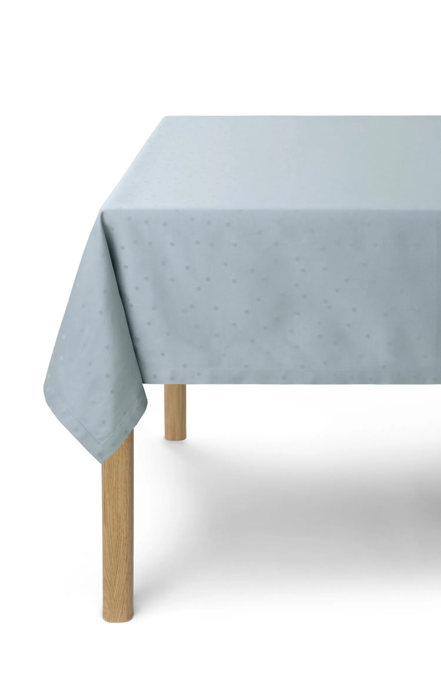 Denne damaskvævede dug i 100 % bomuld tilbyder både holdbarhed og en luksuriøs fornemmelse. Det diskrete prikkede mønster i mineralblå nuancer skaber en rolig stemning ved bordet, mens den glatte tekstur giver et professionelt udtryk.