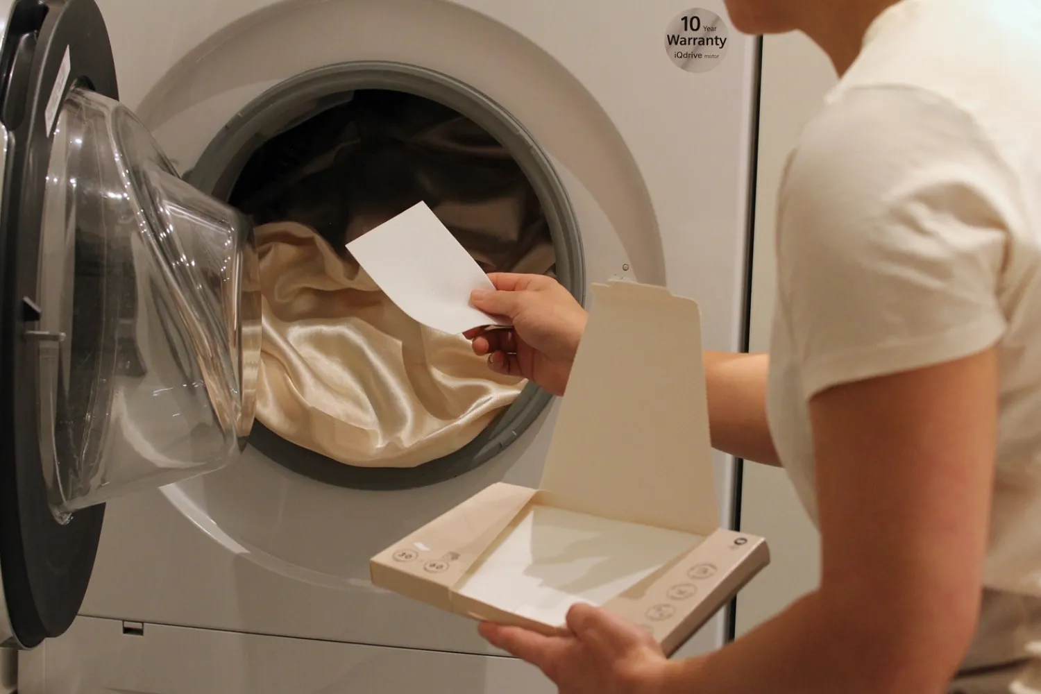 Hvis der skal vaskes mere end 5 kilo, brug 1 hel serviet.