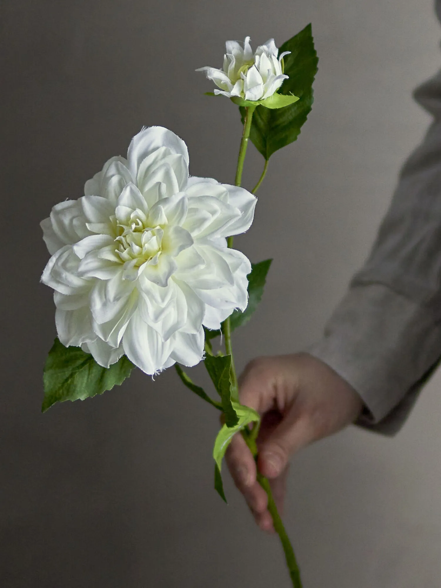 For at sikre den bedste præsentation af din kunstige dahlia anbefaler vi at trimme og folde stilken før brug. Dette hjælper dig med at tilpasse højden og placeringen præcist efter dine ønsker.