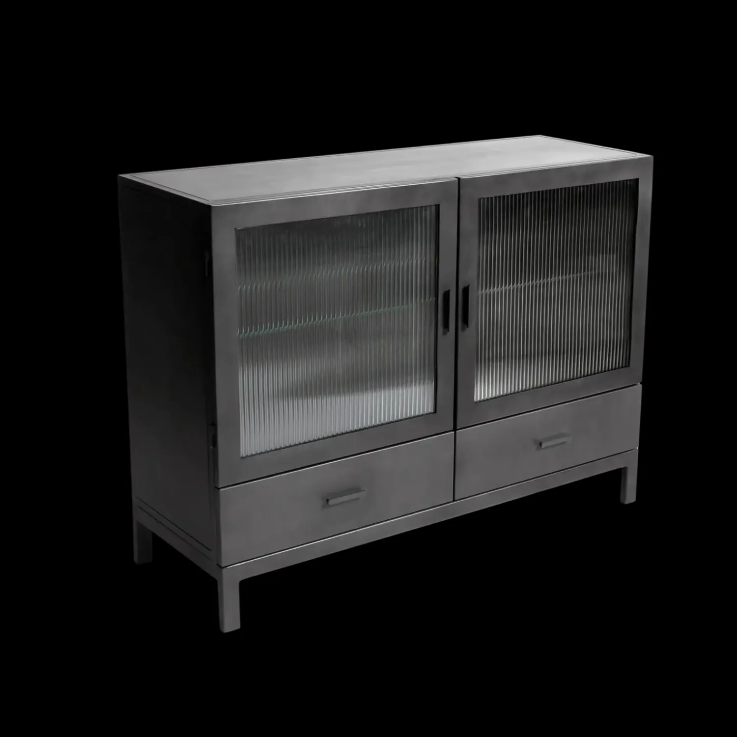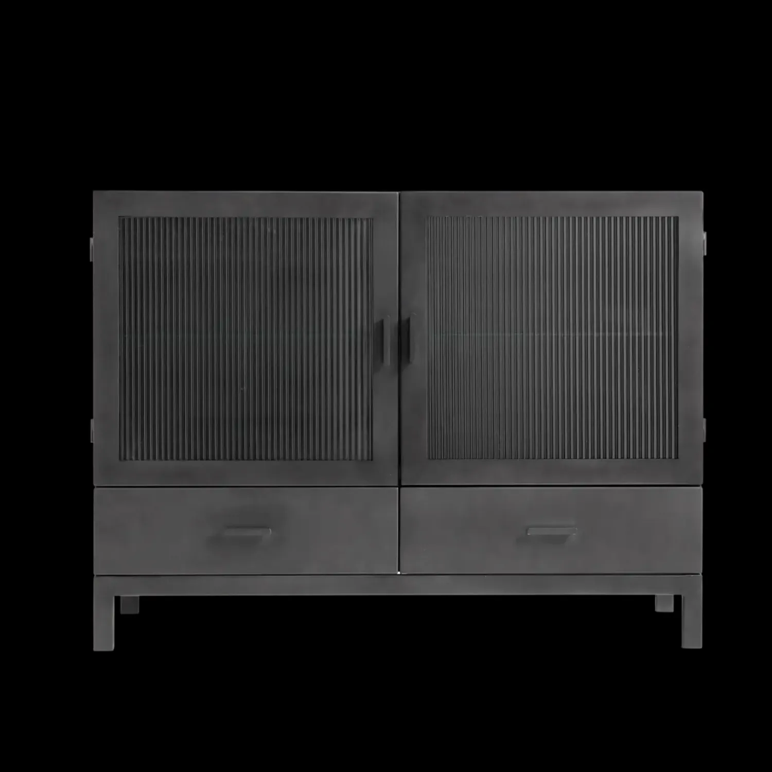 Muubs Dallas vitrineskab i sort er en praktisk opbevaringsløsning til hjemmet. Dette skab kombinerer et moderne design med funktionel opbevaring, hvilket gør det til et alsidigt møbel. De riflede glaspaneler i frontlågerne giver et distinkt udtryk, mens de magnetiske lukninger sikrer nem betjening.
