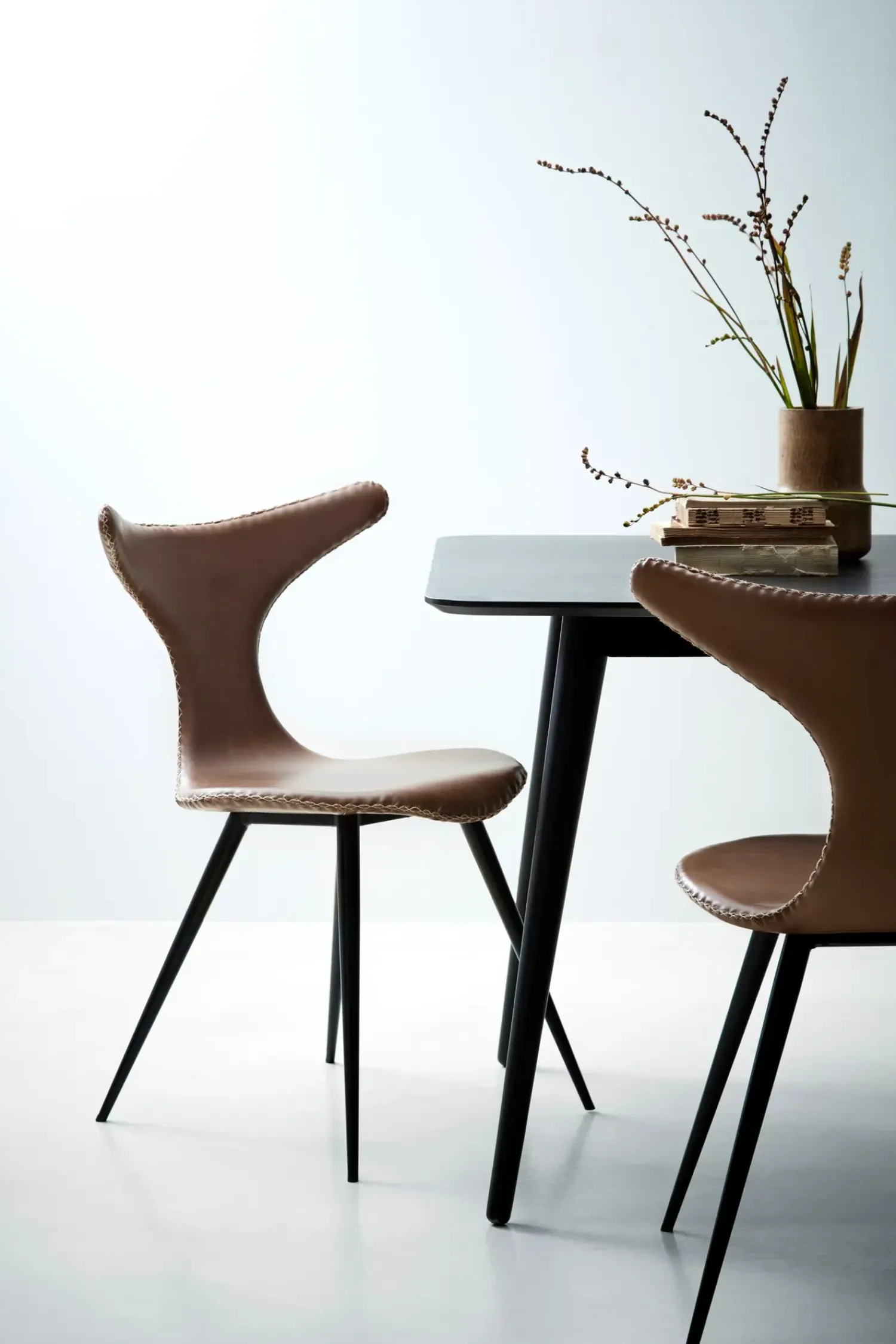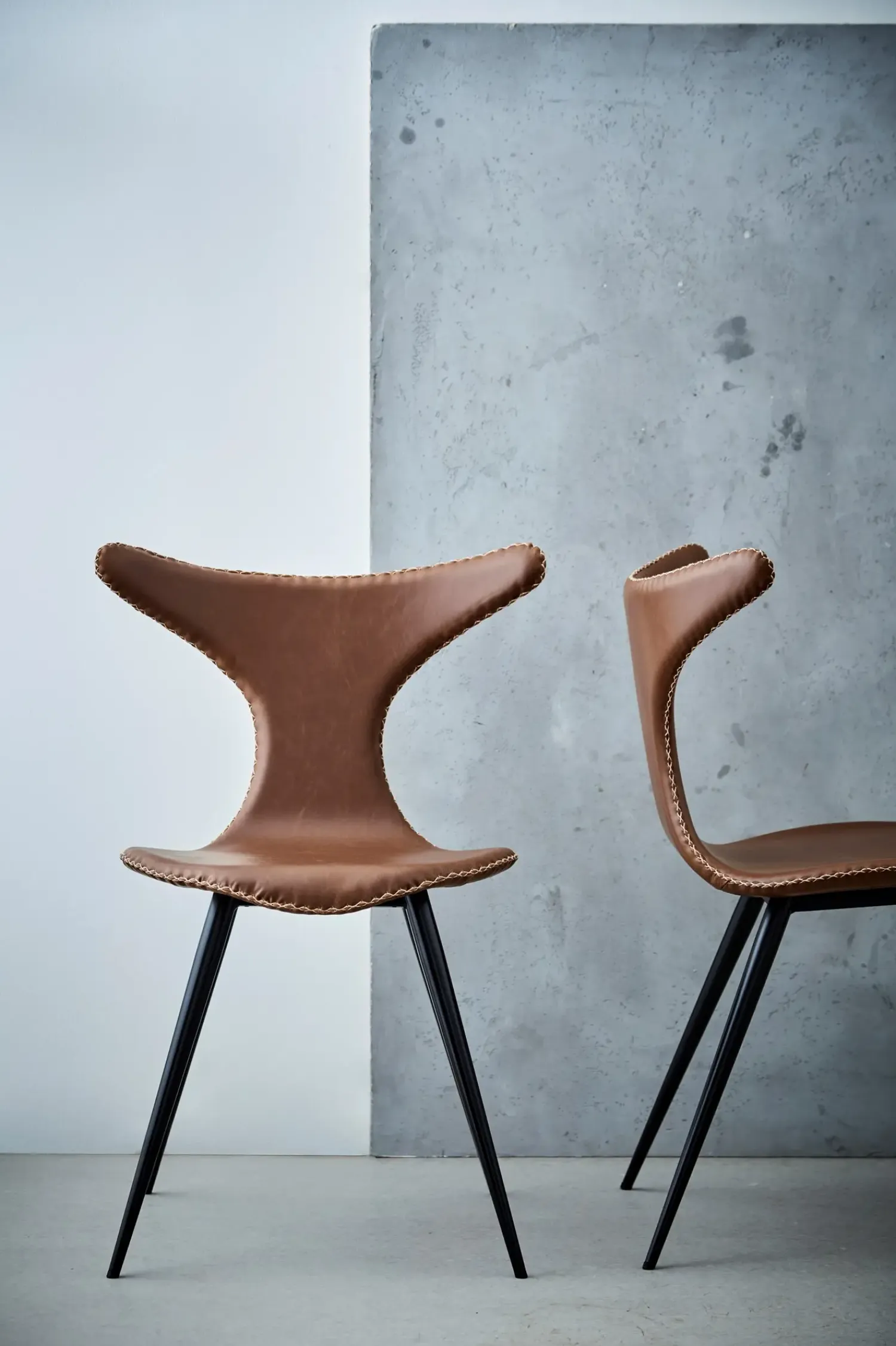 Elegant og moderne stol fra DAN-FORM. Med dens kurvet linjer opnår du en god komfort, samtidig med at den giver et stilet udtryk til rummet. DOLPHIN-serien består b.la. af spisestole og barstole, hvilket gør at det er muligt at have det samme udtryk i hele hjemmet.